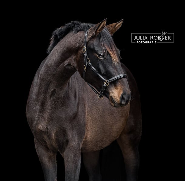 Se vende una yegua de 4 años, bien educada, proveniente de una línea materna con mucha sangre. Ha sido criada de manera adecuada con mucho espacio (en invierno, se le permite salir al paddock diariamente al menos 10-12 horas y en los meses de verano, se mantiene en pasto 24 horas) y ha sido manejada a mano diariamente. El padre, El Salvador, semental del Estado en el criadero de Moritzburg, es un descendiente exitoso en competiciones de Escolar y Sandro Hit. Se ha cruzado con una línea de yeguas con conexión de pura sangre. Un caballo de deporte exitoso de esta línea es el DSP Sheldon Cooper (de Sezuan). Es una yegua hermosa y temperamental, que sin duda también sería adecuada para la disciplina de concurso completo. Actualmente, la yegua está siendo lungada y conoce el peso del jinete al paso. Se han realizado radiografías.