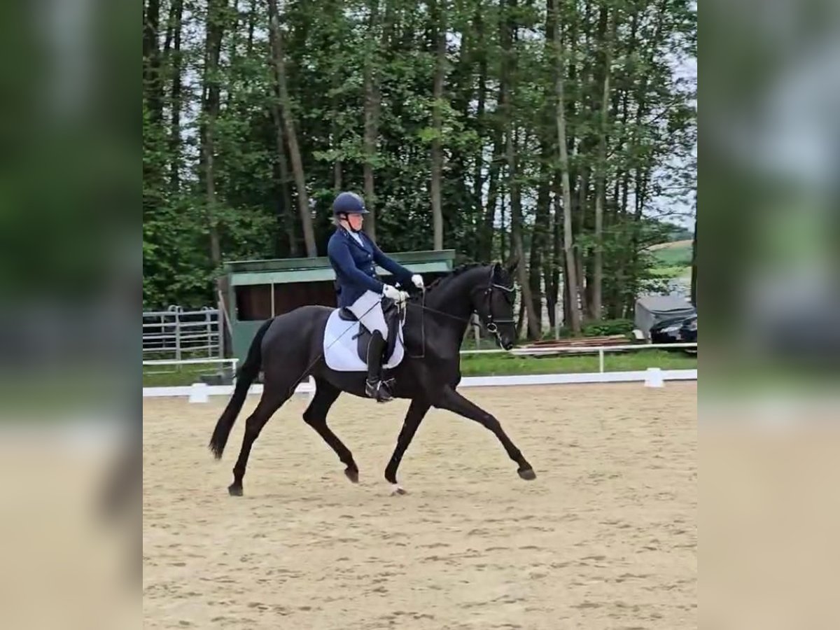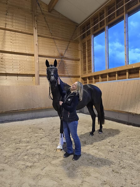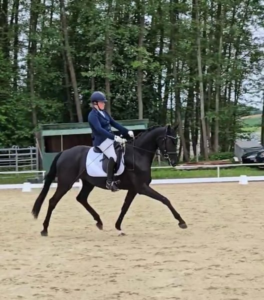 Dreamy young horse with potential for the big arena. Very good X-rays including back from January 2025. For sale is a promising jet-black mare, born in 2021. This modern black mare impresses with her elegant appearance and balanced temperament. She shows great talent in dressage and has already received a solid basic training. Her balanced temperament and excellent movements make her an ideal partner for ambitious dressage riders. Still in development, Sunrise is currently at a solid riding horse/dressage horse A level. Sale only to the best and supportive hands. Sunrise was the reserve champion of the 3-year-old dressage-oriented mares at the mare show in Karpfham 2024. At the Freilaufcup of the Bachl Weekend 2025, Sunrise achieved 3rd place. If interested, we look forward to your contact to discuss further details or to arrange a viewing appointment. Further videos available upon request.