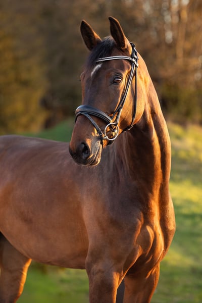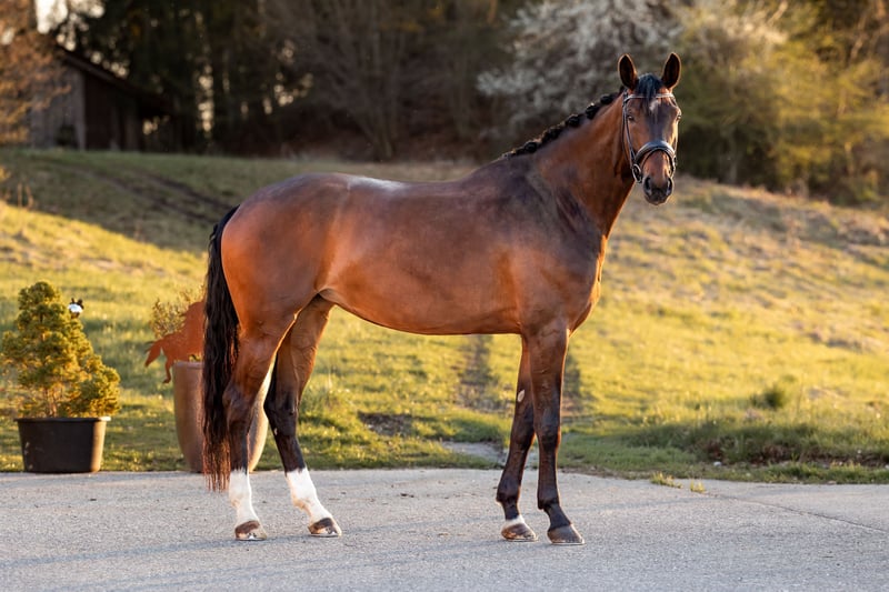 Se stai cercando un puledro da avviare nel grande quadrato e da addestrare autonomamente, qui trovi una vera atleta da disciplina. Dotata di un retrogamba molto attivo e di un’enorme disponibilità alla raccolta, conquista rapidamente i cuori dei cavaliere di dressage. Ha già vinto il titolo di campionessa RPF a 4 anni e, durante l'inverno, a causa della sua crescita, è stata delicatamente rimessa in sesto e ha potuto affrontare le sue prime due gare in dressage A, ottenendo una riserva di quasi 1 punto con punteggi parziali fino a 8,0. In occasione dell’iscrizione al registro mares in München, ha ricevuto un punteggio complessivo di 8,0, con le valutazioni seguenti: passo 8,0, galoppo 9,0 e trotto 10,0. In maneggio si comporta sempre bene, ma desidera essere impegnata e stimolata. Le radiografie del 2025 sono negative e possono essere visionate. Attualmente è di proprietà del selezionatore e viene venduta su incarico. Sono disponibili appartamenti per le vacanze presso la nostra struttura, così da permettere a tutti di conoscerla.
