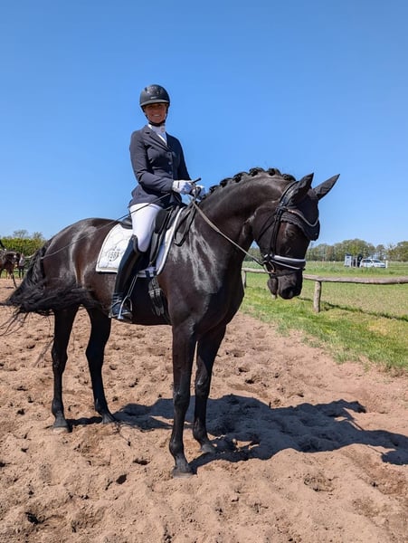 Belle ist ein sehr liebes Pferd was nie auffallen möchte, sie möchte nie was verkehrt machen und hält sich immer zurück. Beim reiten macht sie einfach nur Freude und bekam bei der Stutenleistungsprüfung eine 9,0 in Rittigkeit. Sie ist bei uns im Stall geboren und angeritten was total problemlos war. Ein Pferd was jeder reiten kann und man sich immer sicher fühlt.