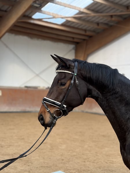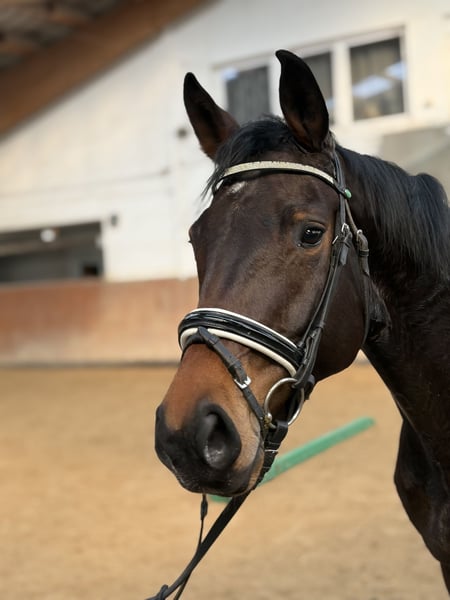 Zum Verkauf steht eine 6-jährige Stute von Soundcheck x Chanteur de noir. (ca. 1,65 m groß) Im täglichen Umgang ist sie brav, sehr menschenbezogen und freundlich. Sie genießt die Aufmerksamkeit, ist verschmust und zeigt sich im Stall unkompliziert im Handling. Beim Reiten zeigt sie jedoch ihren eigenen Kopf: Sie ist sehr sensibel und teilweise noch sehr nervös. Daher ist sie kein Anfängerpferd und ausschließlich für einen erfahrenen, sehr ruhigen und konsequenten Reiter geeignet, der Freude daran hat, mit Geduld und Struktur zu arbeiten. Sie braucht eine klare Führung und eine Person, die ihr Sicherheit gibt und sich nicht aus der Ruhe bringen lässt. Mit der richtigen Herangehensweise hat sie durchaus Potenzial, verlangt aber Zeit & Erfahrung. Neue gute Röntgenbilder liegen vor. Sie hat einen Bockhuf und koppt gelegentlich. Bei ernsthaftem Interesse freuen wir uns über eine Nachricht.