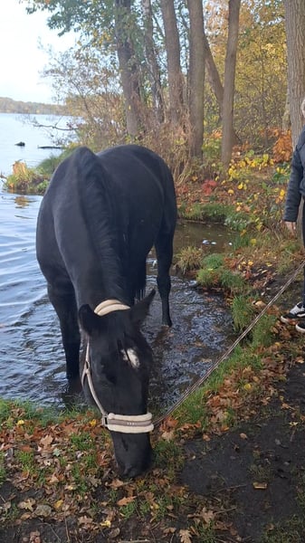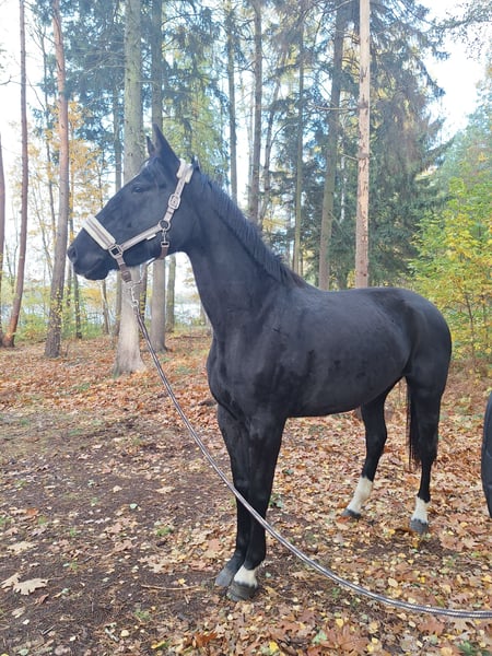 "DEUTSCHES SPORTPFERD" eine wunderschöne 5 jährige Rappstute mit einen Stockmaß von ca. 170cm. Diese Stute besticht nicht nur durch ihre Erscheinung, sondern auch durch ihr ausgeglichenes Wesen und ihre vielseitige Verlanlagung. Sie ist freizeitmäßig geritten und zeigt dich dabei stets brav und unkompliziert. Ob im Gelände , auf den Platz oder an der Longe Sie geht zuverlässig Schritt/Trab/Galopp. Gelassenheit: Sie ist wenig schreckhaft bis gar nicht und zeigt sich gegenüber neuen Situationen eher ruhiger. Aufgrund ihres Alters ist sie noch in der Entwicklung und braucht eine klare Konsequente Führung. Sie hinterfragt ab und zu Dinge ist dabei aber nicht böse, sondern einfach ihren jungen Alter entsprechend noch etwas unerfahren. Mit der richtigen bezugsperson, die Ihr Sicherheit und Struktur gibt, entwickelt sie sich zu einen tollen Partner. In der Herde ist sie eher Rang mittel/bis hoch. Abstammungstechnisch bringt sie interessante Veranlagung mit: mütterlicherseits dressurbetont, väterlicherseits aus den gehobenen spromgsport gezogen. Leider ist sie nicht eingetragen. Würde aber mit weiterer Ausbildung ein nettes Bild auf Turnier geben. Sie hat bisher noch nicht gestoppt vorm Sprung oder wassergraben. Kinder sind bereits auf ihr geritten wo sie sehr brav und Freundlich war. Dennoch wird sie nicht als reines kinderpony verkauft. Gesundheitlich ist zu erwähnen das sie eine leichte high-low Stellung vorne hat was man mit Beschlag gut korrigieren kann. Bei Interesse gerne per WhatsApp unter 0176 13478979 melden