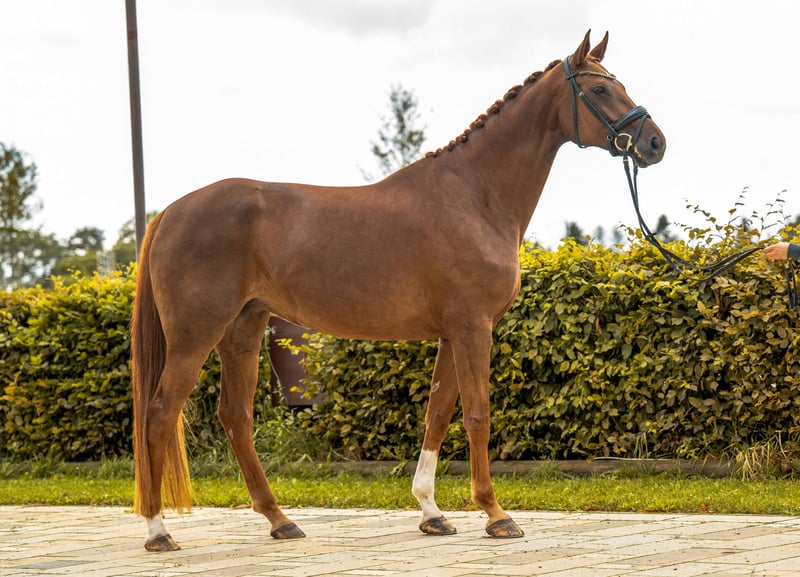 Here you can find the collection and online registration: https://auktion.pzvbw.de/auctions VAT 0% The ingenious genetics of the Grand Prix stallion and line founder Quando-Quando are doubly rewarded in this typey chestnut mare. Initially used as a broodmare, she is now being trained under saddle, has completed her performance test with a dressage score of 8.38, and is ready for her first competitions.