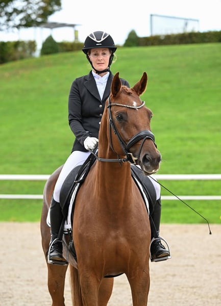Hier geht's zur Kollektion und Online-Registrierung: https://auktion.pzvbw.de/auctions MwSt. 0 % Die geniale Genetik des Grand Prix Hengstes und Linienbegründers Quando-Quando ist bei dieser typvollen Fuchsstute doppelt rückvergütet. Zunächst in der Zucht, ist sie inzwischen reiterlich gefördert, hat ihre Leistungsprüfung mit einem Dressurergebnis von 8,38 absolviert und ist bereit für die ersten Turniereinsätze. The ingenious genetics of the Grand Prix stallion and line founder Quando-Quando are doubly rewarded in this typey chestnut mare. Initially used as a broodmare, she is now being trained under saddle, has completed her performance test with a dressage score of 8.38, and is ready for her first competitions.