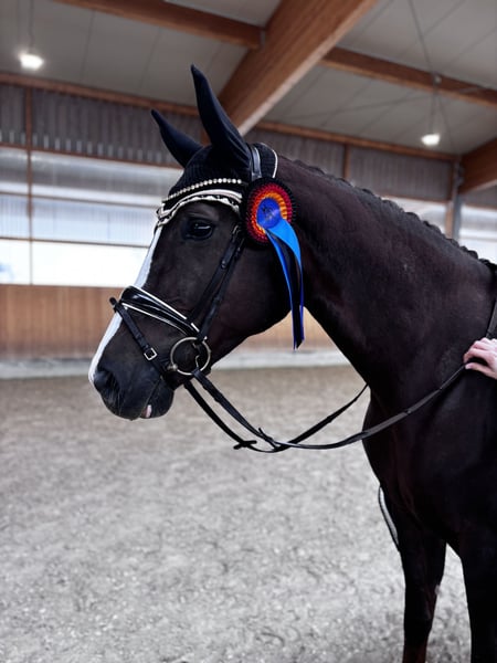 Verkaufe deutsches Sportpferd – elegante Dunkelfuchsstute Zum Verkauf steht eine wunderschöne deutsche Sportpferdestute, die durch ihre Vielseitigkeit und ihr edles Erscheinungsbild besticht. Geboren im Jahr 2019, vereint sie Kraft, Eleganz und Beweglichkeit in perfekter Harmonie. Merkmale: - Rasse: Deutsches Sportpferd - Geschlecht: Stute - Geburtsjahr: 2019 - Farbe: Dunkelfuchs - Stockmaß: ca. 172 cm - Einsatzgebiet: Dressur Dieses talentierte Pferd ist ideal für ambitionierte Reiter, die Wert auf Qualität und Leistungsbereitschaft legen. Sie überzeugt durch ihre angenehme Art, ihre Lernfähigkeit und ihre Bereitschaft, sich weiterzuentwickeln. Sie hatte 2 Fohlen die auf dem Gestüt auch besichtigt werden können. Bei Interesse oder für weitere Informationen stehe ich Ihnen gerne zur Verfügung. Besichtigung und Proberitte nach Vereinbarung möglich.