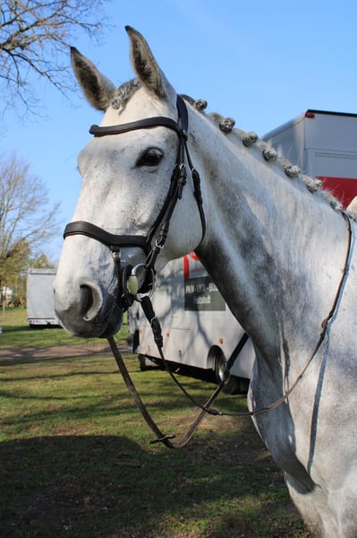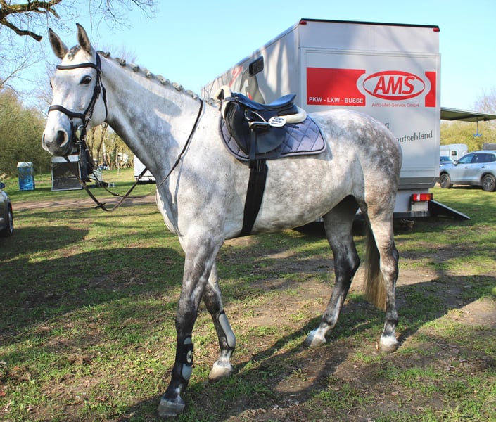 Verkaufe deutsches Sportpferd – Stute, geb. 2020, Schimmel Diese elegante und vielseitige Stute ist ein echtes Highlight für jeden Springreiter. Geboren im Jahr 2020, überzeugt sie durch ihre ausgeglichene Natur, ihre Lernbereitschaft und ihr hervorragendes Springvermögen. Der Schimmel begeistert durch ihre ansprechende Optik und ihre elegante Erscheinung, die sie auf jedem Turnier zum Blickfang macht. Sie ist gut ausgebildet und hat gerade (im April) die ersten beiden Turnierstarts absolviert. Mit ihrer modernen Abstammung und ihrem zuverlässigen Charakter bietet sie optimale Voraussetzungen für den ambitionierten Sportreiter, der Wert auf eine gut gerittene, springbegeisterte Partnerin legt. Ihre Mutter war 2022 Siegerstute der Staatsprämienschau des Pferdezuchtverbandes Brandenburg-Anhalt in Prussendorf und ist bis Klasse S platziert. Diese Stute ist gesund, gut erzogen und zeigt sich im Umgang stets freundlich und kooperativ. Sie ist bereit, ihre nächsten Schritte im Springsport zu gehen. Für weitere Informationen oder eine Besichtigung stehe ich gerne zur Verfügung.