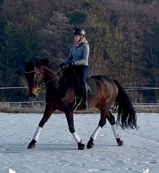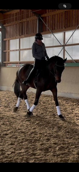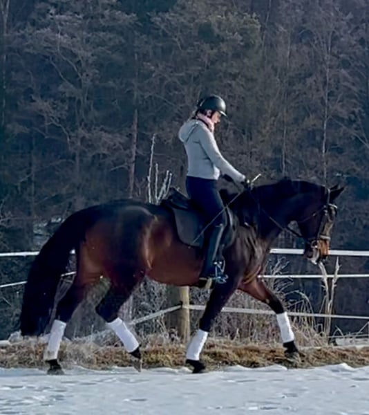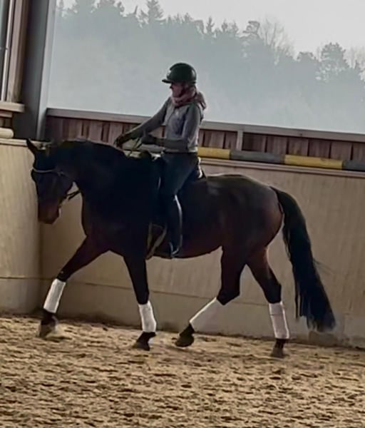 Solemia a grandi avec un autre poulain, ainsi qu’avec des chevaux jeunes et plus âgés en troupeau. Elle se comporte donc de manière très sociale avec ses congénères. Elle est monté alternativement en manège, sur le terrain extérieur et en extérieur. Lorsqu’elle est montée ou manipulée, elle se montre sage et facile à gérer, tout en ayant une présence remarquable. Son allure dynamique et fluide offre un grand potentiel pour le haut niveau en compétition, faisant de Solemia la partenaire idéale pour le cavalier de dressage ambitieux. Actuellement, Solemia se trouve en Bavière, près d’Arnstorf, et peut être essayée à tout moment.