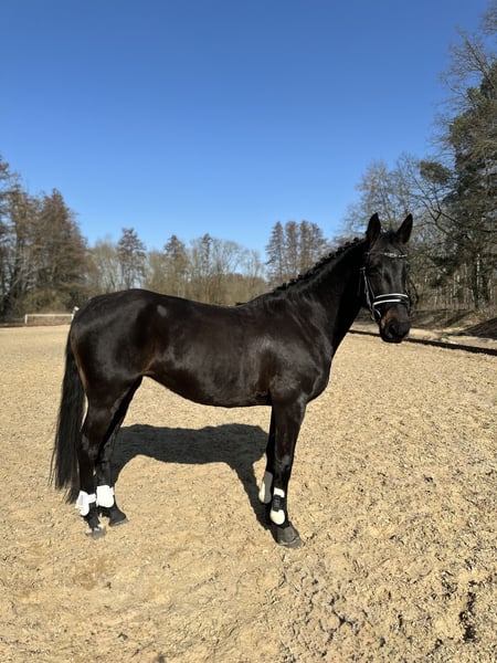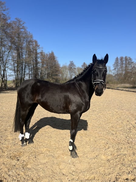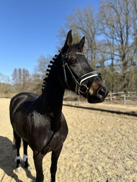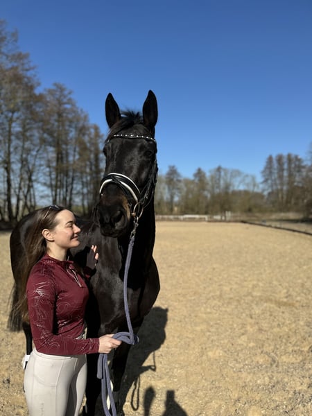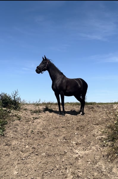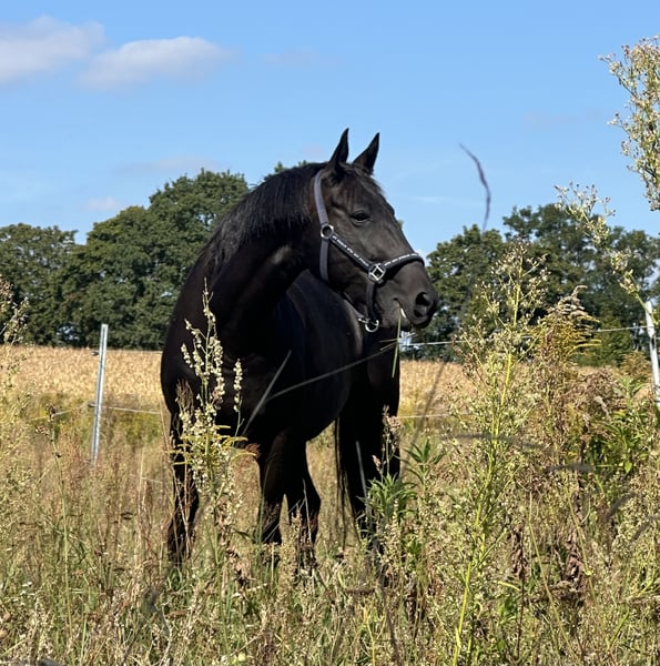 Liebe Pferdemenschen, ich möchte meine 6jährige Stute (2019 geboren) schweren Herzens verkaufen. Die Rappstute ist ca. 1.60 m groß mit einem Erscheinungsbild, das direkt ins Auge sticht. Im täglichen Umgang ist sie immer händelbar, schmiedefromm und zeigt sich beim Verladen sowie während des Transports ruhig und zuverlässig. Sie kennt Auswärtstraining und Lehrgänge, war bereits im Ostseeurlaub mit Strandritten, auf einem kleinen Turnier, bei Spaßwettbewerben sowie im Rahmen eines Reitabzeichen-Lehrgangs unterwegs. Sie wurde spät angeritten, durfte dann noch etwas Pause genießen und ist nun seit etwas über einem Jahren regelmäßig unterm Sattel. Dabei konnte Sie schon in den Anfängen der Dressur, im Springen und auch im Gelände gefördert werden. Nun ist der perfekte Zeitpunkt, um ihr Potential weiter zu fördern. Da sie ihren Ausbildungsstand noch festigen muss und Sicherheit braucht, ist sie kein Anfängerpferd. Als sensibles Pferd benötigt sie einen Menschen mit Feingefühl, Ruhe und Geduld, um ihr Potential abrufen zu können. Da sie noch jung ist, testet sie auch mal und braucht jemanden, der ihr Sicherheit vermittelt, sich durchsetzen kann und selbstbewusst reitet. Die Stute war bei uns nicht einmal krank oder lahm. Gesundheitliche Einschränkungen sind nicht bekannt. Eine AKU kann der Käufer gerne durchführen lassen. Sie kann gerne kennengelernt werden und probegeritten/vorgeritten werden. Aktuell befindet Sie sich zur Verfügung in Beritt und wurde dort durch eine tolle Reiterin sehr gut vielseitig ausgebildet, so dass sie jetzt bereit ist von einem ambitionierten Reiter oder Reiterin weiter gefördert zu werden. Für die Vorstellung mit Probereiten fällt eine Probereitgebühr von 50€ an, die natürlich bei Kauf verrechnet wird. Für alle weiteren Fragen, melden Sie sich gerne per Nachricht! Standort des Pferdes Region Mühlenbecker Land.