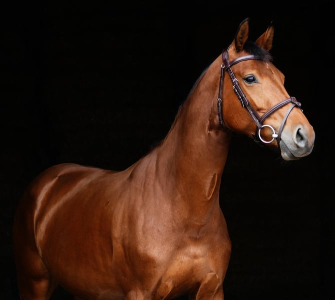 Zum Verkauf steht diese attraktive 7-jährige braune Stute mit interessanter Abstammung. Ihr Vater ist Colestus, mütterlicherseits führt sie Cortoni im Pedigree. Die Stute überzeugt durch ihren sehr lieben und unkomplizierten Charakter. Sie ist stets motiviert, fleißig bei der Arbeit und verfügt über gute Grundgangarten. Im vergangenen Jahr konnte sie bereits erste Turniererfahrungen sammeln und zeigte sich dabei aufmerksam und lernwillig. Über die Wintermonate lag der Schwerpunkt auf einer soliden dressurmäßigen Basisarbeit, wodurch sie sich weiter positiv entwickeln konnte. Aktuell wird sie wieder im Springen gearbeitet und absolviert zu Hause sicher ihre ersten Parcoursrunden. Sie steht bei uns in der Herde und ist gut sozialisiert. Wir wünschen uns für diese sympathische Stute ein liebevolles Zuhause mit viel Auslauf, abwechslungsreicher Beschäftigung und vor allem einer festen Bezugsperson, die sie weiter fördert und begleitet. Bei ernsthaftem Interesse freuen wir uns über eine Nachricht und können gerne ein Probereiten vereinbaren(Gebühr 30€).