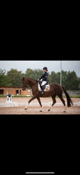Onze prachtige Forever My Rose, een merrie geboren in 2019 en een Duits sportpaard, betovert met haar expressieve uitstraling en haar geweldige karakter, met een stokmaat van ongeveer 1,68 m. De elegante donkervos merrie trekt niet alleen de aandacht door haar prachtige kleur, maar ook door haar weelderige manen en volle staart – een echte blikvanger. Rose is gemakkelijk te rijden, prettig om te zitten en beweegt zelfstandig en correct aan de teugel. Ze is echter niet geschikt voor beginners, omdat een correcte en rustige zit vereist is en ze een rustige hand nodig heeft. In de omgang toont ze zich zeer gemakkelijk, mensgericht en knuffelig. Ze houdt van aandacht en geniet van elke aai. Vanwege een medische aandoening (verkalkte slijmbeurs) is ze niet meer geschikt voor de wedstrijdsport! Daarom zoeken wij voor haar een liefdevolle plek als recreatiepartner of in goede handen voor de fokkerij. Wie op zoek is naar een trouwe ziel met veel charme en hart, zal in Rose een heel bijzondere metgezel vinden.