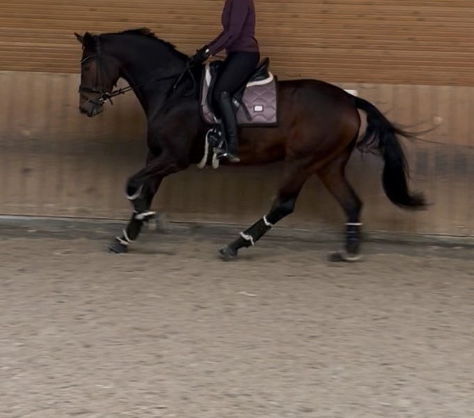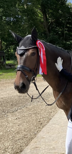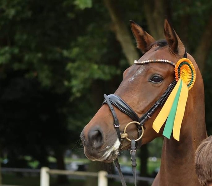 Zum Verkauf steht eine typvolle und ausdrucksstarke Stute (geb. 30.04.2019) von Bernay x London Swing. Leistung & Qualität: Die Stute hat ihre Stutenleistungsprüfung mit Bravour abgelegt und mit einer Gesamtnote von 7,37 (Dressur 7,8 / Springen 6,8) abgeschlossen. In der Rittigkeit wurde sie mit der tollen Wertnote von 9.0 bewertet. Sie ist in Dressurpferdeprüfungen der Klasse A platziert und überzeugt mit sehr guten Grundgangarten. Eine einwandfreie AKU inkl. Rücken und HWS liegt vor. Gesundheitlicher Hinweis: Aufgrund einer neurologischen Erkrankung kann die Stute derzeit nicht unter dem Sattel gearbeitet werden. Sie wird daher ausschließlich als Zuchtstute verkauft. Spaziergänge und Schrittausritte sind problemlos möglich. Nähere Informationen zur Diagnose gerne im persönlichen Gespräch. Charakter und Umgang: Im täglichen Handling ist die Stute ein absoluter Schatz und sehr unkompliziert – brav beim Schmied, beim Tierarzt und beim Verladen. Sie kann problemlos von Kindern geführt und geputzt werden. Keine Unarten wie Koppen oder Weben. Zucht: Die Stute wird regelmäßig rossig und könnte ab sofort besamt werden. Mit ihrer Abstammung, den SLP-Ergebnissen und dem überzeugenden Exterieur bringt sie beste Voraussetzungen als Zuchtstute mit. Preis auf Anfrage. Bei ernsthaftem Interesse freue ich mich über eine Nachricht.