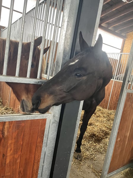 7-jährige DSP-Stute (Bossanova x Köpenick), ca. 172 cm, schwarzbraun – Siegerstute SLP – in liebevolle, erfahrene Hände abzugeben. Sehr menschenbezogen, brav im Umgang, schmiedefromm sowie alleine gelände- und straßensicher. Eine bildhübsche Stute mit viel Qualität und Ausdruck, die auf dem Platz schöne Ansätze zeigt, wenn sie körperlich locker arbeiten kann. Aktuell eher als gehobenes Freizeitpferd mit viel Gelände und dosierter Platzarbeit zu sehen, nicht als klassisches Turnierpferd. Sie ist sensibel und benötigt Zeit, Geduld sowie ein durchdachtes Management, da körperlich nicht immer alles perfekt ineinandergreift. Sie benötigt ein angepasstes Trainings- und Fütterungsmanagement und ist daher kein Pferd für häufig wechselnde Konzepte. Mit Ruhe, Zeit und dem passenden Management kann sie ein gutes Reitpferd sein – sie hatte bereits längere Phasen, in denen sie sehr konstant und problemlos lief. Dennoch wird es vermutlich immer wieder auch anspruchsvollere Phasen geben, mit denen man umgehen können sollte. Verladen ist grundsätzlich möglich, erfordert jedoch konsequentes Training, Erfahrung und sollte kein häufiger Bestandteil des Alltags sein. Abgabe schweren Herzens, da ich ihr aktuell zeitlich und vom Management nicht gerecht werde. Nur in fördernde, verständnisvolle Hände.