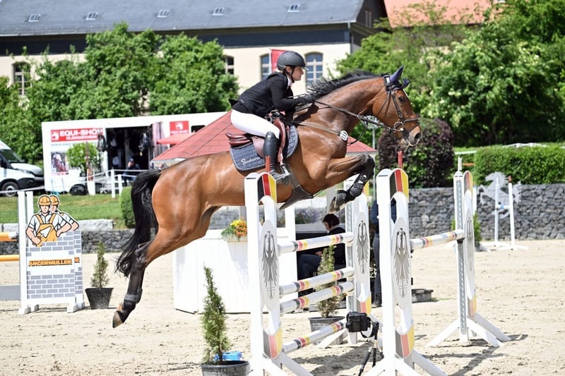 For sale is "Chacca Lou," a 7-year-old DSP mare by Chacfly PS out of Candillo, approximately 173 cm tall. She has multiple high placements in young horse jumping classes and has competed successfully up to M-level show jumping. She is sold directly from the breeder. "Chacca Lou" is a very special young mare with great potential for the future. Since foalhood, her exceptional talent has been evident from her first jumps under saddle. With incredible quickness, athleticism, and a lot of talent, she represents a promising prospect for an ambitious show jumper. Careful and always eager to avoid mistakes, she has all the qualities expected of a modern sport horse. Her long legs, blood-like build, and attractive size make her a true eye-catcher. She has a powerful, large canter and is easy to ride in dressage, showing grace and suppleness with minimal effort. In handling, she is lively and very open to humans. She also gets along well with other horses and is not overly dominant. When jumping, she displays a certain temperament that currently requires a more experienced rider to channel her motivation effectively. With further training, "Chacca" is undoubtedly an exceptional talent that, in the right hands, can make her way into top-level sport. The mare has always been healthy; X-ray examinations conducted as part of a breeder’s health check showed no notable findings. She is being sold solely for private reasons. Feel free to submit your horse request on our website, and we will forward suitable sale horses to you: https://www.seahorse-boxbrunn.com/seahorse-sales
