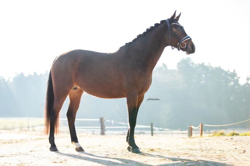 Na sprzedaż wystawiona jest 8-letnia klaczka o doskonałej linii matczynej. Carrie jest dobrze wytrenowana (na hali, na placu itp.), jednak obecnie nie jest użytkowana do jazdy, a jedynie jako klacz hodowlana, dlatego jazda próbna niestety nie jest możliwa, a cena jest odpowiednio niska. Jest zdrowa, nigdy nie była kulawa ani chora! Carrie z pewnością nadaje się na partnerkę rekreacyjną lub sportową, ponieważ w obsłudze i traktowaniu jest bardzo spokojna i bezproblemowa. Sprzedajemy ją jedynie z powodu zmniejszenia stada i potomstwa żeńskiego. Mieszka na wybiegu w grupie klaczy i jest bardzo towarzyska! Jej linia matczyna jest wyjątkowej jakości. Jej bezpośredni półbrat to zwycięski ogier z Münchenu, kolejny półbrat został zarejestrowany i zdobył S***, a dwie kolejne siostry to zwyciężczynie S**. Brat pełny jej matki był medalistą brązowym na Mistrzostwach Europy w Windsorze i innych międzynarodowych konkursach! Ta linia gwarantuje przede wszystkim zdrowie, wytrzymałość i zdolności skokowe! Była również uczestniczką programu wsparcia Bayernskiego Związku Hodowlanego! Zainteresowanych prosimy o kontakt przez WhatsApp/telefon: 0170/2779570