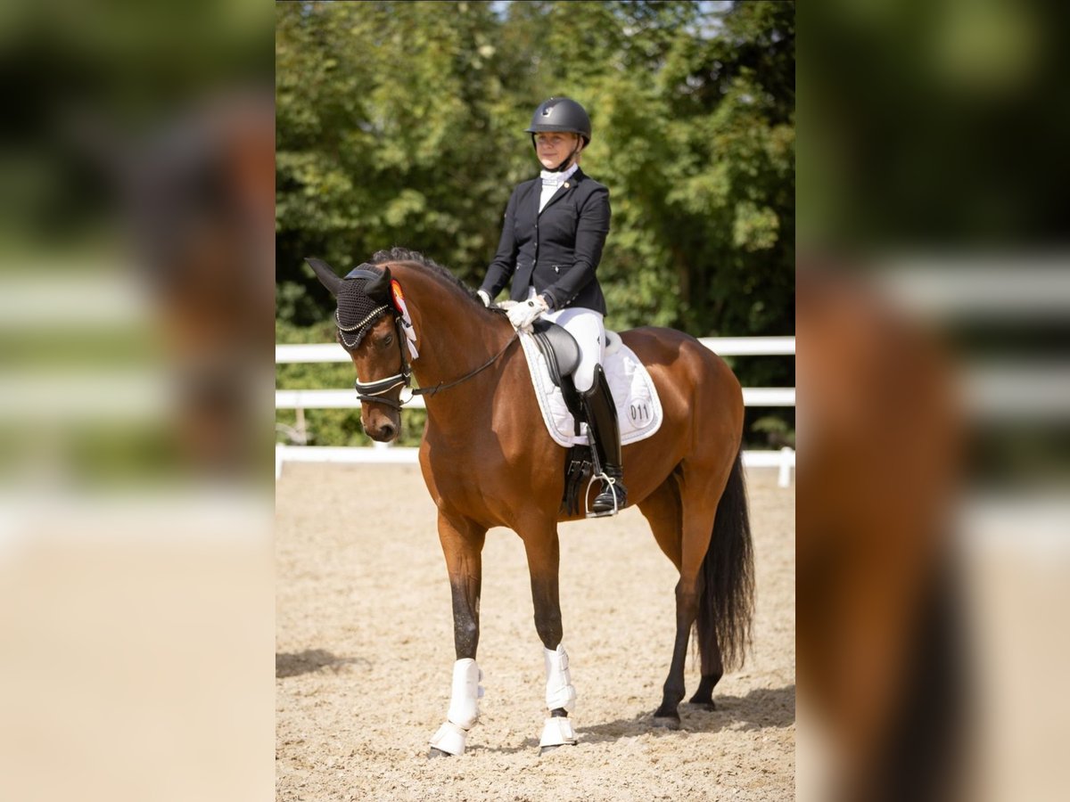 MALOU, eine bildschöne Stute abstammend von Morricone x De Chirico, die mit ihrer Ausstrahlung stets alle Blicke auf sich zieht. Sie ist mit 3 sehr guten Grundgangarten ausgestattet und einer enormen Rittigkeit, ganz fein in der Anlehnung, toll zu sitzen, nicht glotzig und mit dem nötigen Go ausgestattet, was weder zu viel noch zu wenig ist. Ihre bisherigen Turnierstarts meisterte sie souverän und konnte sich mit hohen Noten mehrfach an vorderer Stelle in Dressurpferdeprüfungen der Kl. M platzieren. Gute Ansätze für Piaffe/ Passage runden ihr Talent und die Perspektive für den großen Dressursport ab. Da sie sehr menschenbezogen ist, wünschen wir uns für Malou ein tolles Zuhause, wo sie geliebt und geschätzt wird. Sehr guter TÜV vorhanden.