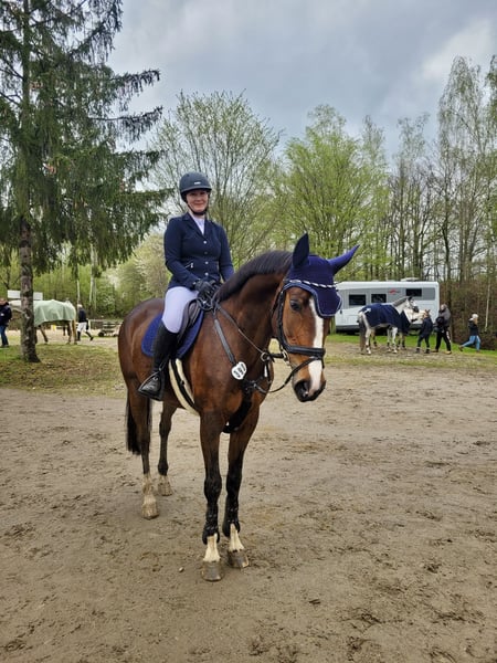 Montana überzeugt in der Arbeit durch Rittigkeit, Motivation und Engagement. Sie möchte ihrem Reiter immer gefallen, ist leicht in der Hand und macht Spaß. Sie bringt eine toll zu sitzende, elastische Galoppade und ein super Reitgefühl mit. Im Parcours verfügt sie über genügend Go, ohne heiß zu werden. Sie kennt zuverlässig ihren Job und ist am Sprung nicht guckig. Ich könnte sie mir auch sehr gut im Hunterbereich vorstellen. Durch ihre Grundqualität, gute Grundgangarten und Rittigkeit eignet sie sich als moderner, sportlicher Typ ebenfalls fürs Viereck. Auch als gehobenes Freizeitpferd einsetzbar. Im täglichen Umgang ist sie brav, zudem schmiede- und verladefromm. Sie ist regelmäßig geimpft, entwurmt und in osteopathischer Betreuung. Die Zähne wurden 2025 gemacht. Erfolge: • Springpferde A mit Noten bis 7,8 (2. Platz) • Stilspringen gewonnen mit 8,1 • Springpferde L gelaufen • Aufgrund Babypause in 2024 nicht und in 2025 wenig von mir vorgestellt, unverbraucht! Probereiten ist nach Absprache jederzeit möglich. Transport kann auf Wunsch übernommen werden.