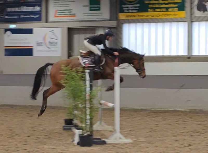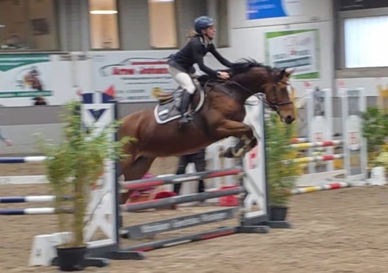 Talented mare with top pedigree – Vivant van de Heffinck x Balou du Rouet This stunning mare impresses not only with her type and correct conformation but especially with her enormous jumping ability and outstanding lineage: Vivant van de Heffinck – internationally highly successful and known for rideability, scope, and attitude – meets the proven Balou du Rouet, who stands for performance, technique, and athleticism. Vicky presents herself with elastic movements and plenty of scope, take-off, and reflexes over jumps. Initially used for breeding, she was gently started under saddle by a girl and prepared for her career as a show jumper. She successfully mastered her first training competition with flying colors. She appeared very cool and composed in the unfamiliar arena and was easy to handle. This pleased us greatly and makes us eager for more. Further competition appearances are planned. She has also been ridden in lessons by a talented 14-year-old girl. Vicky can be ridden well in the three basic gaits, completes a course under the rider, and goes boldly and fearlessly out on the trails, even alone. She shows herself to be very rideable, motivated, and willing to perform under the rider, bringing everything needed for a successful future in higher-level show jumping. She is suitable for both ambitious amateurs and professionals and is a true athlete with a lot of potential. However, I could also see her in eventing or with sensitive, demanding leisure riders. In handling, Vicky is a treasure and gets along well with other horses. Nevertheless, she is not a beginner's horse yet, as she is still at the beginning of her career and needs to be ridden relatively delicately. 7-year-old DSP mare, by Vivant vd Heffinck x Balou du Rouet, 1.67m, Clinical exam and X-rays available. Video: https://youtu.be/QlDxzudL9vw?si=BXU5bgyQoZtdlkWF Video: https://youtu.be/gExWz_5FHF0?si=Qyl8TBAYX6c0MNGb https://youtu.be/vbjhTluvnjQ?si=oRGG1LbzF-WllteC https://youtu.be/lr6gw5Ymwj4?si=N_NOMu-V-paZ_LtG "Videos, training highlights, and further impressions of our sales horses can also be found on Instagram: [maresi_lange]. There you will get additional insights and a closer look at the horses’ development." The description of the horse is based on our subjective impressions and experiences and is not a warranty or guarantee of characteristics. Riding trials are at your own risk. For presenting/riding trials of the horse, we charge a fee of 30 euros, which will of course be deducted from the purchase price of the horse.