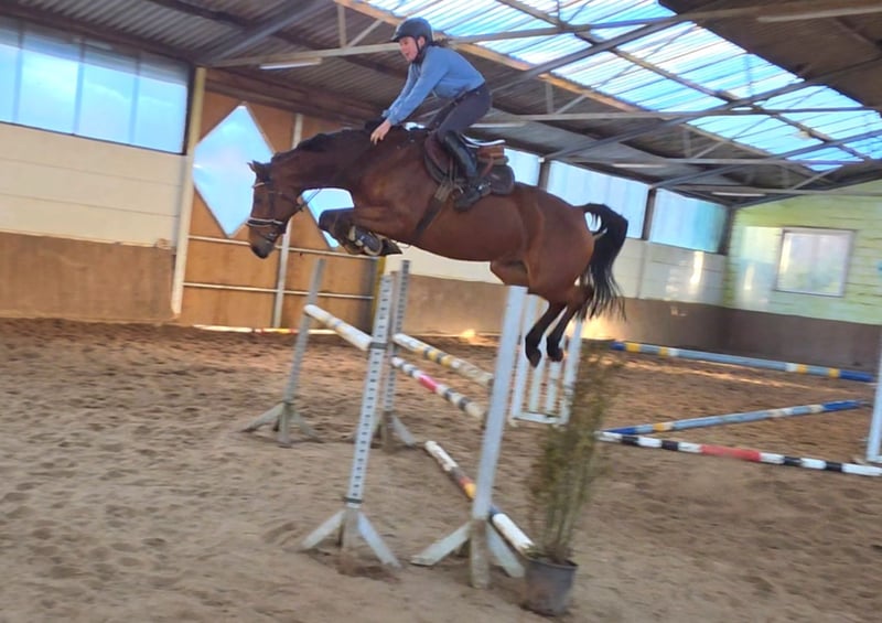 Talented mare with top pedigree – Vivant van de Heffinck x Balou du Rouet This stunning mare impresses not only with her type and correct conformation but especially with her remarkable jumping ability and outstanding lineage: Vivant van de Heffinck – internationally successful and renowned for rideability, talent, and attitude – combines here with the proven Balou du Rouet, known for performance, technique, and sportiness. Vicky demonstrates elastic movements with plenty of suppleness, power, and reflexes at the jump. Initially used in breeding, she was gently backed by a young rider and prepared for her career as a show jumper. She has since competed successfully in two Clear Round Jumping classes (Class A), jumping clear on her first attempts. Vicky is well-schooled in the basic gaits, completes a course under saddle, and approaches cross-country terrain confidently and fearlessly. She is even capable of riding alone. Under the rider, she is very rideable, motivated, and eager to perform, possessing all the qualities for a successful future in higher-level show jumping. She is equally suitable for ambitious amateurs as well as professionals and is a true athlete with great potential. I could also imagine her in eventing or with sensitive, discerning leisure riders. In handling, Vicky is a sweetheart and gets along well with other horses. However, she is not a beginner's horse yet, as she is still at the beginning of her career and requires a rider with finesse. Late in her sporting development but with high quality and attitude. Unexploited & on the right path. 8-year-old DSP mare, by Vivant van de Heffinck x Balou du Rouet, 16.1 hh, clinical exam and X-rays available Videos: https://youtu.be/USl9CVmDOOU?si=_WvixhKh1hm6ZjBK https://youtu.be/iRFBCLImq7c?si=QInDE5jKOrn7dNDX https://youtu.be/OcrIE6DYJAE?si=ka89kY2ilQFRszqT More photos, videos, and insights into our daily horse life are available on Instagram: [maresi_lange]. Feel free to visit and get to know our four-legged friends in advance. You can find additional photos, videos, and small glimpses into our horses’ daily routines on my website MaresiLange.de or upon request. Please note that the horse’s description is based on subjective impressions and experiences and does not constitute a guarantee of qualities or characteristics. Trial riding is at the buyer’s own risk. The sale is carried out on behalf of the owner. For viewing or trial riding, we reserve the right to charge a fee of 30 euros, which will be deducted from the purchase price if the horse is sold.