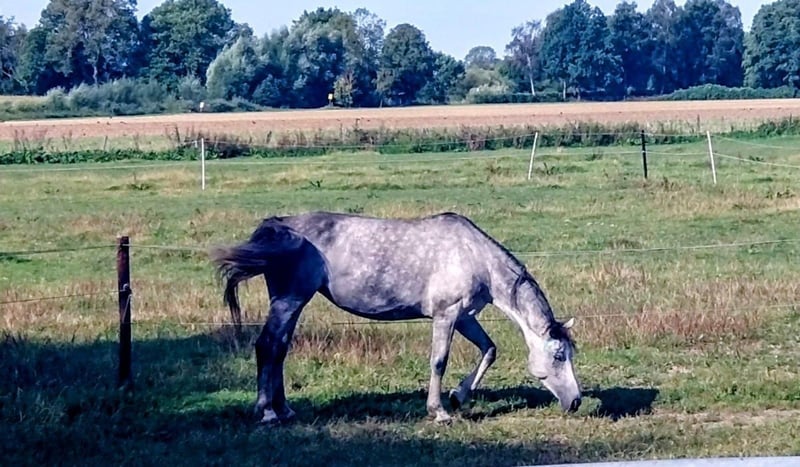 Te koop: mijn ca. 1,68 m grote merrie van Diacontinus, uit een Continue - Limborat. Ze is geboren in 2018, werd op driejarige leeftijd kort aangezweeën en is daarna in de fokkerij gebruikt. De merrie is rustig in omgang, vriendelijk en leergierig. Ze is goed drachtig en een goede moeder. Haar moeder, Classic Touch, was zelf met een juniorin geplaatst tot en met klasse S. De merrie wordt verkocht vanwege een verkleining van de kudde, zie ook onze andere merries.