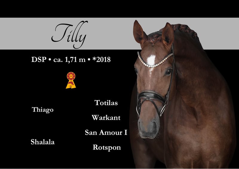 Queridos interesados, Para concertar una cita para una prueba de manejo, por favor envíenme un WhatsApp. Para consultas adicionales, estoy disponible durante el día por WhatsApp, y por teléfono es mejor contactarme entre las 16 y las 19 horas. Espero su contacto con interés. ⚜️ Tilly ⚜️ Edad: 7 años (2018) Altura: aproximadamente 1,71 m Pedigrí: Thiago x San Amour Nivel de entrenamiento: caballo de doma clásica categoría A, clasificada, nivel L terminado EKG: buenas radiografías antiguas disponibles UBICACIÓN: Hayingen, Baden-Württemberg Hermosa nieta de Totilas, con un tipo de semental, con gran disposición para el deporte y equipada con tres excelentes GGA. Además, posee un gran expresividad y siempre busca agradar. Gracias a su imponente y hermoso aspecto, atrae todas las miradas. Clasificada en doma clásica categoría A, nivel L terminado. Es completamente apta para amateurs, muy equilibrada y tranquila, aunque no es una yegua para principiantes; se requiere un jinete con nivel en L. Caballo de doma de alto rendimiento, que siempre quiere hacer las cosas bien. Es muy fácil de montar, cómoda en el asiento y fina en la entrega. Solo en manos de las mejores, experimentadas y que fomenten su potencial. Directamente del criador. Es sociable en la manada y también va tranquilamente al campo. Buenas radiografías disponibles. ⚜️ Tel: 0171-3438949 ⚜️ a.devittorio@web.de ⚜️ https://www.ehorses.de/angelinadevittorio Facebook e Instagram: Angelina De Vittorio
