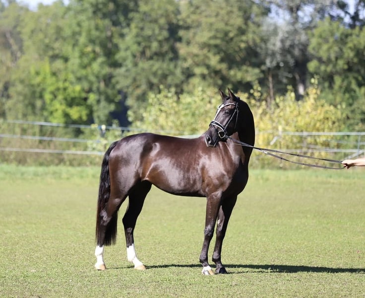 Wiwi ist eine 9-jährige schwarze Schönheit von Pacelli W x Walt Disney I. Die Stute ist ca. 163 cm groß, deckt aber sehr gut ab. Sie ist nicht für Reitanfänger und/oder schwächere Reiter geeignet. Sie möchte schon geritten werden und benötigt Sicherheit und Konsequenz "von oben". Bisher wurde sie eher dressurmäßig geritten und befindet sich aktuell auf A-Niveau. Im Umgang ist sie ein unkompliziertes Pferd. Sie kennt sowohl Offenstall, als auch (Paddock) Boxenhaltung. Ich verkaufe sie aufgrund von Zeitmangel schweren Herzens und suche für sie ein 5* Zuhause mit Familienanschluss. Sollte euch meine schwarze Schönheit ansprechen, sende ich gerne weitere Infos und Videos per WhatsApp. Video auf Anfrage.
