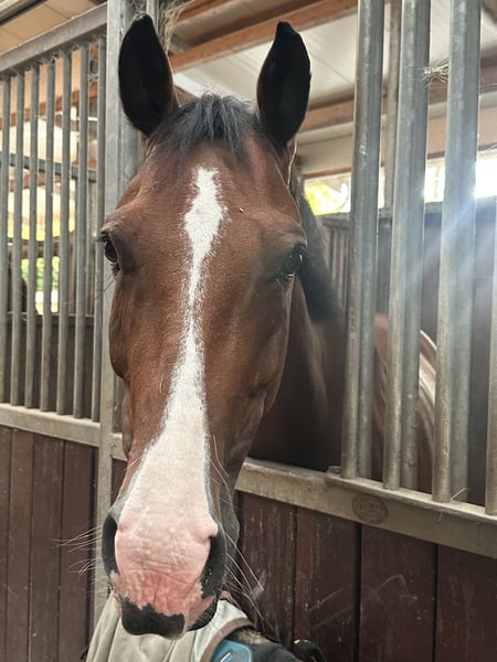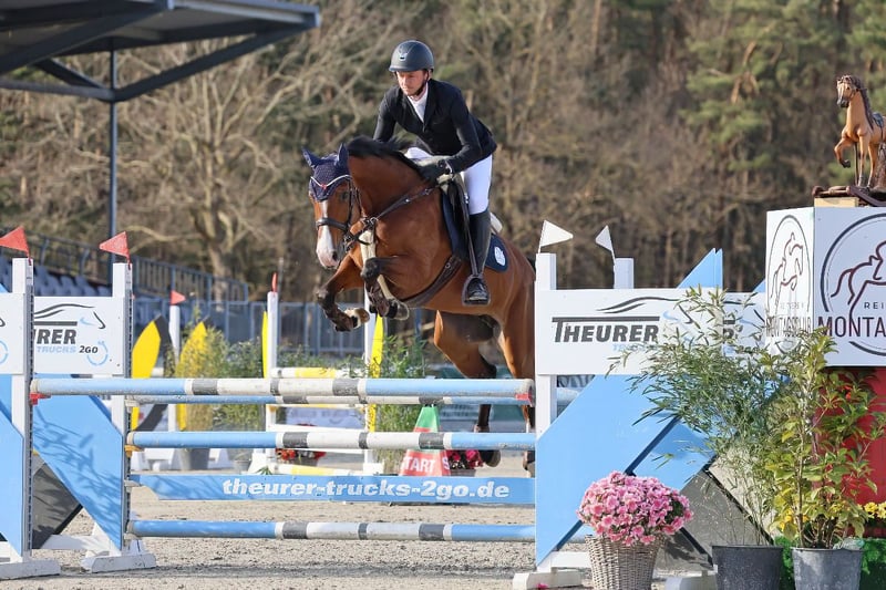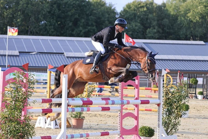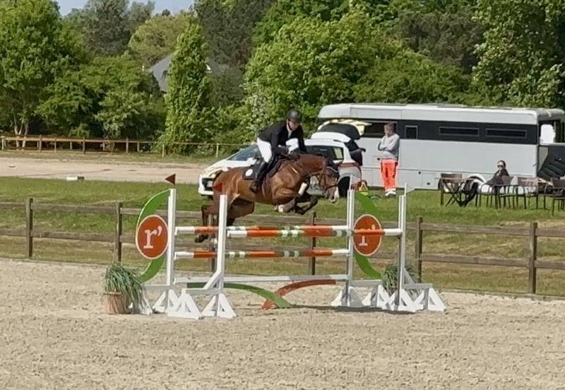 Cinnamon is a stunning 9-year-old mare sired by Casalido, out of a Quintero mare. Although she is of a smaller stature (approx. 1.64 m), she possesses three very good basic gaits and shows great talent in jumping. She is very brave, energetic, and confident over fences, yet also very cautious at the jump and always eager to land on the other side. Cinnamon is very people-oriented and always well-behaved around other horses. She is accustomed to sharing pastures and paddocks with both geldings and mares. Naturally, she is farrier- and loading-trainable, routinely transported in both trailer and truck, and experienced in indoor and outdoor competitions. She behaves confidently on the lunging circle as well. Cinnamon is also familiar with hacking, both alone and in company. Due to her spirited nature in show jumping and occasional strong reactions to her environment, she requires an experienced rider with good routine. Therefore, she is not suitable for beginners. She has currently placed multiple times in M-level classes. Additional videos can be provided upon request. For more information or to arrange a viewing, please contact us.