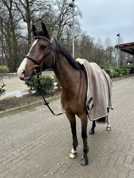 Cinnamon ist eine 9 jährige, wunderschöne Stute von Casalido aus einer Quintero Mutter. Trotzdem sie im kleineren Rahmen steht (Stockmaß 1,64m), verfügt sie über drei sehr gute Grundgangarten und zeigt großes Talent im Springen. Dabei ist sie sehr mutig und mit genügend Go ausgestattet, zugleich aber auch sehr vorsichtig am Sprung und möchte stets auf die andere Seite. Cinnamon ist sehr menschenbezogen und auch mit anderen Pferden stets brav. Sie kennt es, sowohl mit Wallachen als auch mit anderen Stuten auf der Weide und dem Paddock zu stehen. Selbstverständlich ist sie schmiede- und verladefromm, fährt routiniert sowohl im Anhänger als auch im Transporter und kennt Turniere in der Halle und draußen. Auf dem Abreiteplatz verhält sie sich routiniert. Auch das Ausreiten kennt Cinnamon sowohl allein als auch mit anderen Pferden. Da die Stute im Parcours viel Blut entwickelt und sich manchmal stärker von ihrer Umgebung beeindrucken lässt, braucht sie eine/n Reiter/in mit genügend Routine. Daher ist sie nicht für Anfänger geeignet. Sie ist aktuell mehrfach M platziert. Weitere Videos können gern bei Interesse verschickt werden. Für weitere Informationen und zur Vereinbarung eines Kennlerntermins freuen wir uns über Nachrichten.