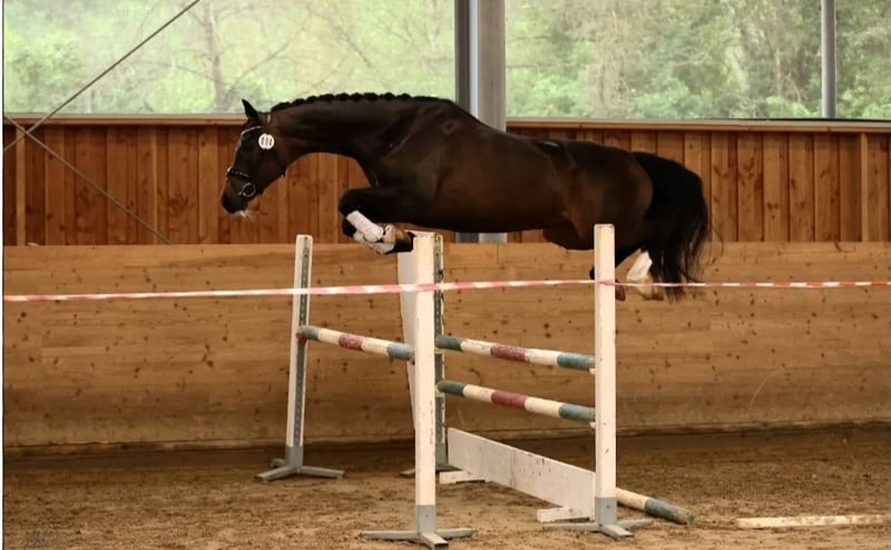 For sale is Corabelle S, an elegant dark bay mare, 8 years old and approximately 16.1 hh, bred in Bavaria as a Deutsches Sportpferd. She has achieved M-level placings and is on her way to competing at advanced levels. Lunging has already been gently introduced both in hand and under saddle, showing great potential. This motivated and well-trained mare has successfully passed her mare performance test, making her also an interesting prospect for breeding due to her pedigree. Corabelle S impresses with three good basic gaits, excellent rideability, and an exceptionally positive work attitude. She is versatile and familiar with: ✔ Jumping ✔ Trail riding ✔ Treadmill work ✔ Lunging ✔ Groundwork ✔ Lunge line training Corabelle S is easy to ride and consistently shows motivation and a friendly, people-oriented nature. Whether for an ambitious competitive rider or a leisure rider with high standards – this mare is a real opportunity. The sale is due to private reasons; a loving and suitable home is the top priority. X-rays from 2020 are available. A current veterinary clearance can be arranged upon request. Accessories can be purchased additionally. 📍 Location: 91522 Ansbach 💬 Price: €60,000 negotiable 📹 Videos and further information available upon request Serious inquiries are welcome – preferably initially via WhatsApp for work-related contact.