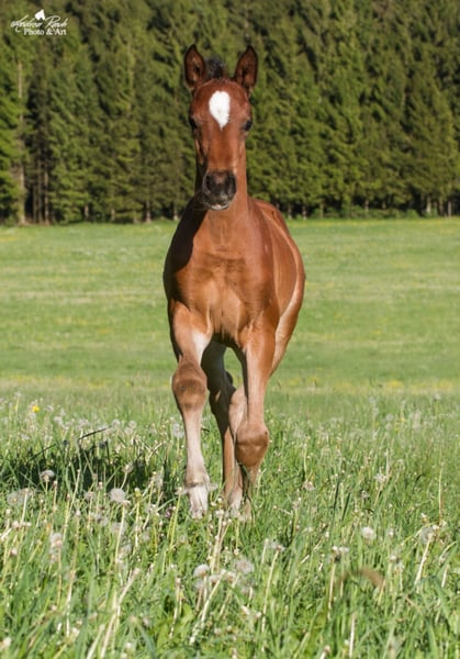 Klaczka o silnym charakterze, jasna i zorientowana na ludzi z bardzo atrakcyjnymi chodami podstawowymi. Złota nagroda na wystawie źrebiąt w Pfullendorf 06/2017. Źrebak został dopuszczony do aukcji i pokazuje najlepsze warunki do hodowli i sportu. Dalsze informacje na temat rodowodu można znaleźć poniżej: Sire Johnson wypracowała sobie drogę do absolutnego szczytu sportu ujeżdżeniowego pod kierownictwem Hansa Petera Minderhouda. Syn Jazzu zajmuje 11. miejsce na liście rankingowej FEI World Ranking List, zajął 8. miejsce w klasyfikacji indywidualnej na Igrzyskach Olimpijskich w Rio, zdobył drużynowe złoto na Mistrzostwach Europy 2015 w Aachen i zdobył brązowy medal jako solista. Dzięki fenomenalnym występom Johnsona w Rio de Janeiro, łatwo przeoczyć jego drużynowy brązowy medal na Światowych Igrzyskach Jeździeckich w Caen, a także drugie miejsce w Grand Prix i Grand Prix Freestyle w Rotterdamie. Johnson wydaje się podążać coraz bardziej w ślady ojca Jazza i dziadka Flemmingh'a. Sam Jazz był aktywny na najwyższym poziomie i przez lata znajdował się na szczycie rankingu ogierów ujeżdżeniowych WBFSH, a Flemmingh zostawił swój ślad na imprezie. Dziadek Don Schufro (OLD ) jest absolutnie wyjątkowym reproduktorem. Swoją karierę rozpoczął od zwycięstw w testach dla młodych koni jeździeckich w 1996 roku, a w 2008 roku wraz z Andreasem Helgstrandem w Hongkongu zdobył brązowy medal w drużynie. W sumie 10 razy został numerem 1 w rankingu FN Breeding Value Evaluation w Niemczech. Imponuje swoją maksymalną kadencją i nośnością. Jego potomstwo jest w domu na wielkich placach świata. Jego córka Una Donna Unique została Czempionką Świata sześcioletnich koni ujeżdżeniowych w 2010 roku. Pradziadek Donnerhall jest bez wątpienia najbardziej znanym ogierem na świecie; żaden inny ogier nie ma tak wielu udanych potomków. Więcej informacji można znaleźć na mojej stronie internetowej: http://www.stern-pferdezucht.de/pferde/fohlen/jahrgang-2017/diamond-star-st/