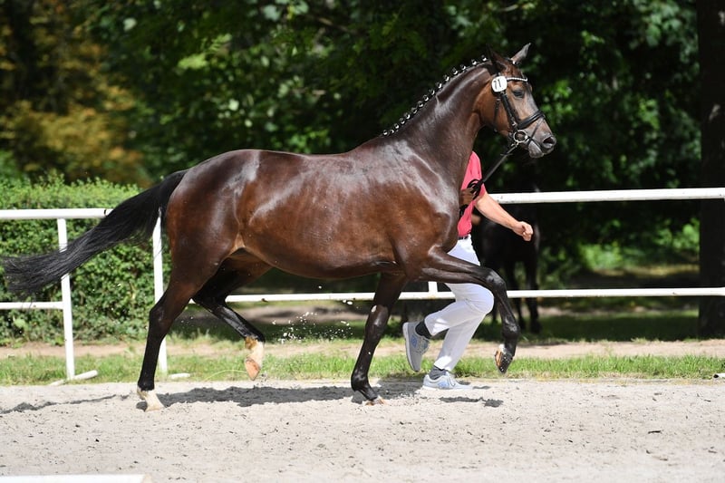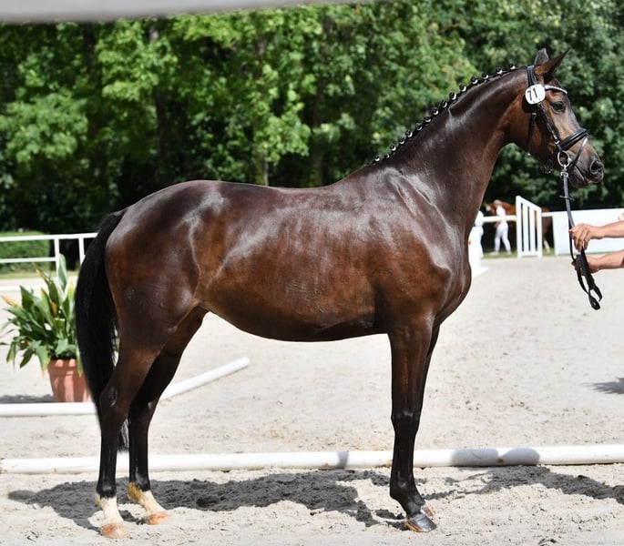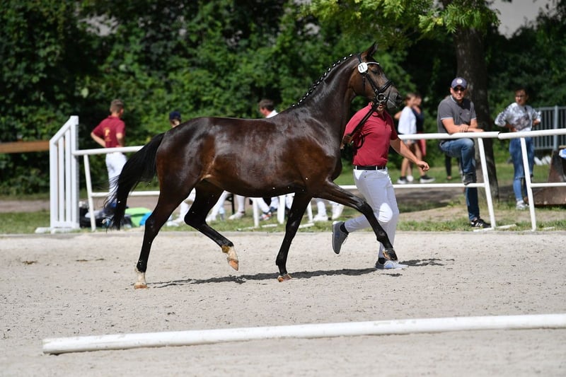 Due to age-related reasons, we are downsizing our breeding horse herd. Therefore, we are offering this dressage jewel, currently in foal to the full-blood stallion Sunny Sam xx. Romantika successfully completed her mare performance test at the age of four and has been used for breeding ever since. She is healthy, without any health issues, and has a friendly temperament that is easy to handle. We are happy to answer any further questions either here on ehorses or, preferably, by phone at 0171 47736011.