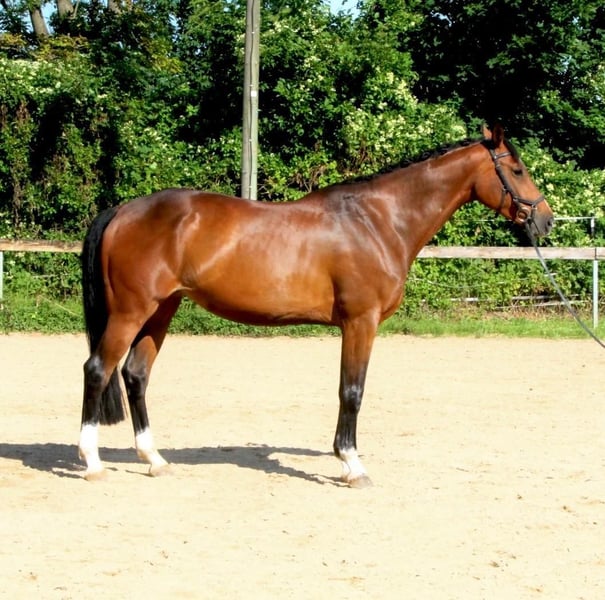 Se vende Hilde, una hermosa y elegante yegua de deporte de 2017 de color marrón. Demuestra mucho talento en los saltos y posee suficiente capacidad. Es fácil de montar, pero tiene mucha energía. Ha tenido tres potros muy buenos y, por eso, acaba de comenzar en la competición deportiva. Ahora está lista para competir. El precio aumentará con las primeras participaciones en concursos. Tiene un chip en la parte frontal, que puede ser retirado a costa del comprador. Hasta ahora, no ha causado ningún problema.