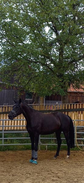 Elegantes deutsches Sportpferd sucht neuen Besitzer/in Diese beeindruckende Rappstute wurde im Jahr 2017 geboren und vereint kraftvolle Präsenz mit viel Potenzial . Mit einem großzügigen Stockmaß von 1,77 m bietet sie die ideale Größe ! Sie überzeugt durch ihre elegante Erscheinung sowie ihre ausgeglichene Art. Als Zuchtstute bringt sie wertvolle genetische Qualitäten mit und verfügt über eine außerordentliche Abstammung, die ihre Vielseitigkeit unterstreicht. Sie wurde sorgfältig ausgebildet und zeigt sich im Umgang äußerst zuverlässig und absolut freundlich. Diese Stute ist die perfekte Wahl für ambitionierte Züchter !