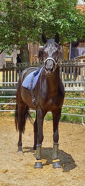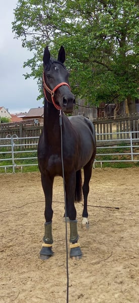 Elegant German sport horse seeking a new owner This impressive black mare was born in 2017 and combines a commanding presence with great potential. Standing at a generous height of 17.7 hands, she offers an ideal size! She impresses with her elegant appearance and her calm, balanced nature. As a broodmare, she brings valuable genetic qualities and boasts an outstanding pedigree that highlights her versatility. She has been carefully trained and is extremely reliable and friendly in handling. This mare is the perfect choice for ambitious breeders!