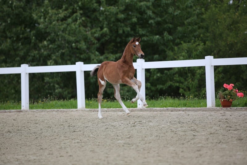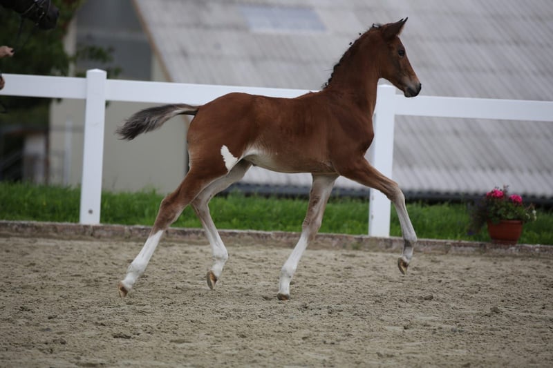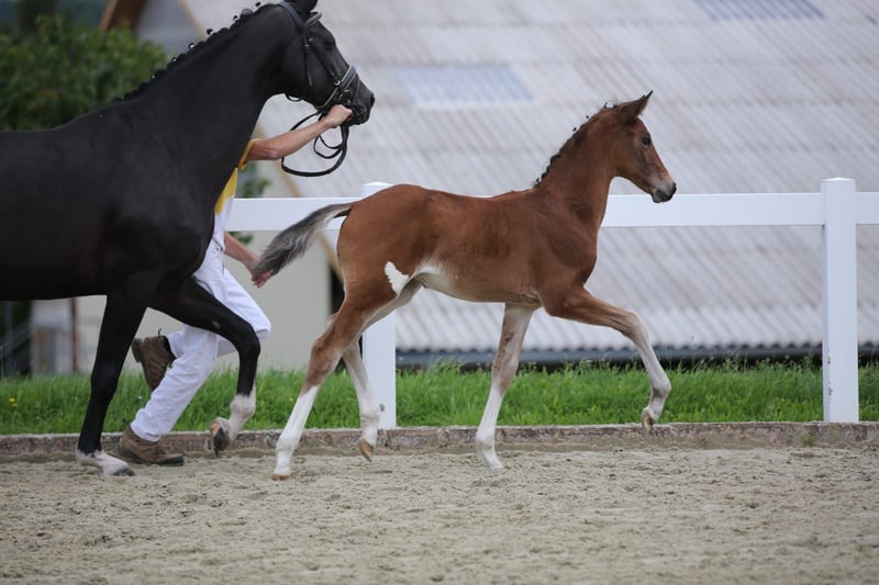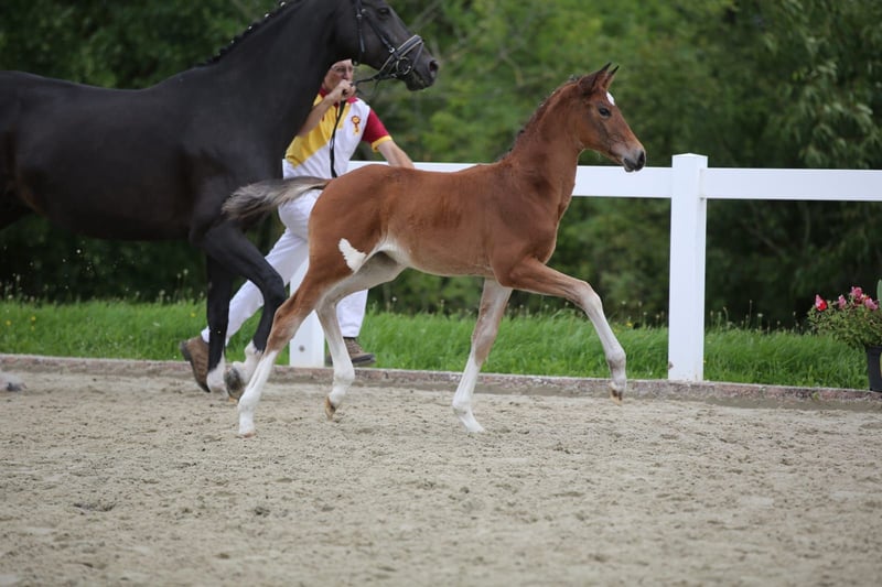 Zum Verkauf steht ein besonders charmantes Stutfohlen, das sofort ins Auge fällt und das nicht nur wegen ihres auffälligen Flecks an der Hinterhand, sondern auch wegen ihres freundlichen und zutraulichen Wesens. Sie begeistert durch Vertrauen zum Menschen und ein bewegungsstarkes, elegantes Auftreten. Sie ist eine Tochter des Oldenburger Hengstes Viva Vitalis OLD, der dieses Jahr das Bundeschampionat der sechsjährigen Dressurpferde in Warendorf mit der herausragenden Endnote von 8,96 gewann. Die Mutterlinie führt auf De Janeiro zurück und vereint ausgezeichnete Eigenschaften in Typ, Bewegungsqualität und Rittigkeit. Dies zeigte das Fohlen auch bei ihrer Teilnahme am Fohlenchampionat. Dieses Stutfohlen bietet ideale Voraussetzungen für Sport oder Zucht und wird durch ihr besonderes Auftreten und ihren liebevollen Charakter garantiert zum Blickfang. Besichtigungen sind nach Absprache möglich.
