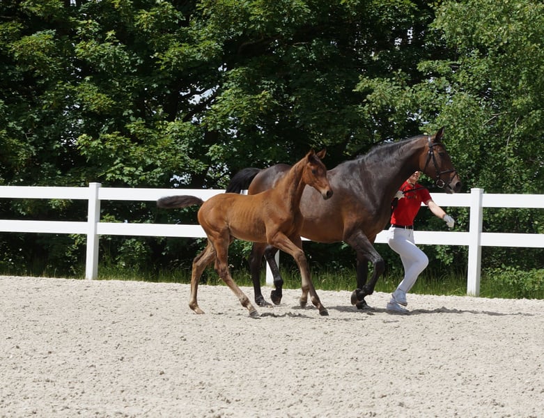 This typy colt with jumping potential and impressive gallop comes from the first crop of the Hanoverian Chawonix. Chawonix, a promising stallion from the 2021 crop, impresses early on with his potential. Although he has not yet achieved any sporting successes himself, he has already been awarded as a premium stallion. His pedigree, however, promises great things. His sire, the Mecklenburg stallion Chacoon Blue, has impressively proven his class in show jumping with over 80 placements in more than 190 starts and has over 800 offspring. The dam of Chawonix, the Hanoverian mare Va-Verdi Crazy Love, brings another dimension of quality to the breeding line with her sire, the Belgian Warmblood Vagabond de la Pomme. Vagabond de la Pomme himself has achieved over 70 placements in 171 starts and is the sire of over 500 offspring. With this outstanding genetic foundation, Chawonix is eagerly anticipated in the breeding scene. The first foals born this season could mark the beginning of a new success story. His hereditary power, supported by the impressive performances of his ancestors, gives hope for a successful future both in sport and in breeding. The dam of the offered foal is a daughter of the Thoroughbred Ituango xx. Ituango xx was successful in flat racing and has already impressively proven his breeding power. Of 115 offspring, one (Airman xx) has been licensed, five mares have been state premium awarded, and 31 are successful in dressage, show jumping, eventing, and driving up to the advanced level. In the descending line of the dam, proven stallions can be found, suggesting a future for the foal in eventing or show jumping. Another show jumping foal (filly) by Lausitzer-Cheetano-Contenaro is also available. Please only make inquiries by phone at: 00491716429595.