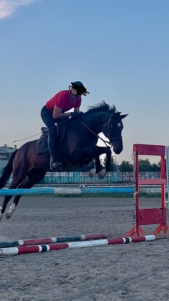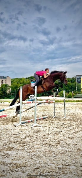 Cheval de sport demi-sang à vendre, hongre, 9 ans, 165 cm au garrot, situé à l'hippodrome de Belgrade (Serbie). Expert en saut d'obstacles et dressage, très fiable et expérimenté en extérieur. Sociable avec les autres chevaux et les humains. Courageux, très stable mentalement, transportable sans problème et calme en box. Une radiographie a été réalisée il y a un an et demi, et elle ne présentait aucune anomalie.