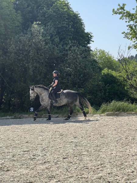 For Sale: German Warmblood Gelding An impressive German Warmblood gelding, born in 2015, is available for purchase. Standing approximately 16.1 hh, he captivates with his elegant gray coat. This talented gelding shows great potential in dressage as well as jumping, making him suitable for eventing too. He impresses with his excellent movement, balanced temperament, and willingness to learn. He is suitable for both experienced riders and ambitious amateurs who wish to further his training. The gelding is well-behaved, well-mannered, and has a solid basic education. For inquiries or more information, please feel free to contact me. Viewings and trial rides can be arranged by appointment.