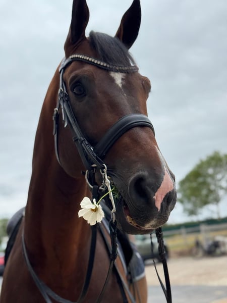 Wyjątkowy 12-letni, zarejestrowany ogier, który w niezwykły sposób łączy sportowe doświadczenie, najwyższą ujeżdżalność oraz imponującą naturalną prezencję. Już na arenie międzynarodowej potwierdził swoje umiejętności, biorąc udział w Mistrzostwach Świata Młodych Koni. Wyniki aż do poziomu Inter II podkreślają jego wysoką jakość i stabilny rozwój w kierunku Grand Prix. Jego ruch zachwyca siłą, elastycznością oraz wyraźnym tendencją do zbiegnięcia do góry, szczególnie w galopie. Wyróżnia się ekspresją, pewnością siebie i charyzmatyczną obecnością w parkurze – to koń, który bez trudu przyciąga uwagę. Pomimo statusu ogiera, w codziennym kontakcie jest wyraźnie opanowany, odporny na stres i wyjątkowo współpracujący. Jego ujeżdżalność i pozytywne nastawienie czynią go niezawodnym partnerem dla najbardziej wymagających sportowych celów. Koń dla koneserów – dla jeźdźców, którzy oprócz jakości i doświadczenia cenią sobie coś wyjątkowego.