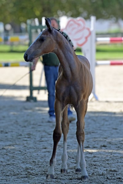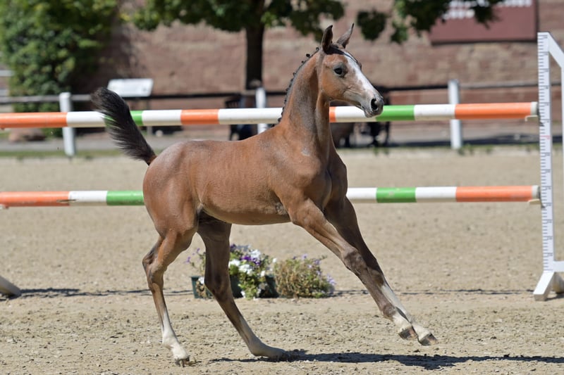 **Sales Advertisement: German Sport Horse - Stallion** For sale is a promising stallion, a German Sport Horse, born in May 2025. Bacardi impresses not only with his appealing appearance but also with his elastic and powerful movements. He is sired by Baggio×Calumet and was awarded gold at the foal show. Additionally, he was crowned as the champion foal. At the foal championship, he consistently achieved scores above 8 (overall 8.12). A whole range of successful stallions such as Cornet Obolensky, Baloubet du Rouet, Casall, and Limited Edition can be found in his pedigree. Bacardi has mastered the foal ABC and is growing up in a herd. He can also be sold as a gelding. His full sister (3 years old) has shown good manners and technique while free jumping and is currently being gently started under saddle.