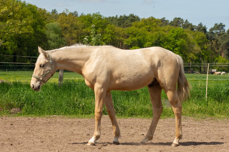 Bright Benicio (Spitzname "Brighty") ist ein unglaublich sympathischer Kerl mit korrektem Gebäude und sehr guten Grundgangarten, für die er zur DSP-Fohlenschau in Neustadt/Dosse 2024 mit einer Prämierung und der Championatsqualifikation belohnt wurde. (Zum Championat konnten wir aus organisatorischen Gründen nicht fahren.) Über Benicio-Blut bringt Brighty ausgezeichnete Dressur- und Rittigkeitsveranlagung mit. Die Sonderfarbe Palomino ist ein zusätzlicher Bonus, der ihn zu einem absoluten Hingucker macht. Vater Ben Benicio ist momentan auf Erfolgskurs und sammelt Siege und Platzierungen in Dressuren der Klasse S - inzwischen auch auf internationalem Niveau. Brighty ist halfterführig und kennt bereits Spaziergänge im Wald und spielerische Bodenarbeit mit Gymnastikball und Co. Er ist dabei sehr aufgeschlossen und artig.