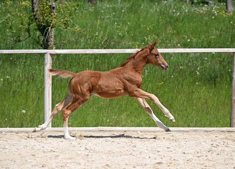 Jährlingshengst, geboren 2025, gezogen aus Bowmore X Va Bene, mit sportlicher Aufmachung und klarem Hengsttyp. Besonders hervorzuheben ist das harmonische Kopf-Hals-Verhältnis und seine insgesamt athletische Erscheinung. Aufwachsend mit gleichaltrigen Hengsten, zeigt er sich im täglichen Umgang neugierig und wach, dabei mit einem eher aktiven Temperament. In der Bewegung präsentiert er sich bergauf und dynamisch, ohne dabei übertrieben oder hektisch zu wirken – ein sportlich aufgemachtes Pferd mit guter Balance für sein Alter. Der Hengst wurde als Fohlen prämiert. Aufgrund des Alters wird das Pferd ausschließlich in erfahrene und fördernde Hände abgegeben. Wir bitten um Verständnis, dass reine Preisanfragen oder Verhandlungsfragen nicht beantwortet werden, da es sich um ein Lebewesen handelt und uns ein passendes Zuhause wichtiger ist als ein schneller Verkauf. Bei ernsthaftem Interesse freuen wir uns über eine Kontaktaufnahmen, beantworten gerne weitere Fragen und stellen zusätzliches Bild- und Videomaterial zur Verfügung. Eine kurze Vorstellung der eigenen Person hilft uns dabei, besser einzuschätzen, ob Pferd und Mensch gut zusammenpassen. Anfragen gerne auch per WhatsApp unter +4915560581906
