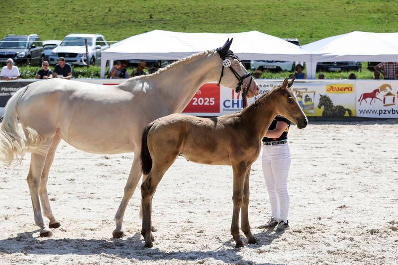 For Sale: German Sport Horse Stallion, born 2025 We are offering an impressive German sport horse stallion, born in 2025. This elegant buckskin gelding captivates with his striking appearance and promising pedigree. Standing at 17.5 hands, he is the perfect size for dressage competition. The stallion is ideally suited for ambitious riders who prioritize quality and performance. His balanced temperament makes him an excellent partner for high-level dressage. Vitus is friendly, very even-tempered, and well-versed in basic foal training. In the second photo, you can see his dam, who carries a double diluting gene, making her foals particularly interesting. The dam’s lineage is performance-oriented, and the sire, Vangelis S, has achieved dressage success competing for Birkhof. Please feel free to contact me for more information or with any questions. Viewing and test riding are available by appointment.