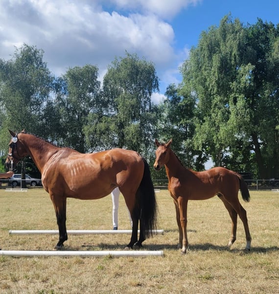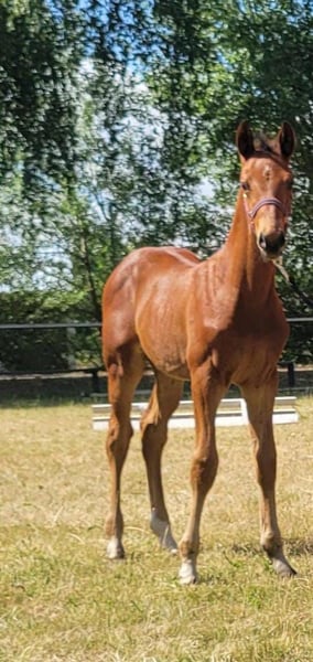 Na sprzedaż wystawione jest to wyjątkowo udane, bardzo dobrze umięśnione źrebię od Chac Boy (sportowa nazwa Exelero) z matki po Chap I (Cellestial). Jako źrebię, CHACERO potwierdził swoją jakość na pokazie źrebiąt, gdzie został wyróżniony tytułem championatu. CHACERO jest bardzo dobrze umięśniony, ma wyraźne stawy i estetyczną, typową sylwetkę. Jego potencjał ujawnia się szczególnie w ruchu – posiada świetny chód z dobrą tendencją do unoszenia się i dużą siłę z zadatków. Charakteryzuje się spokojnym, przyjaznym usposobieniem. Z łatwością akceptuje halter, prowadzenie i podnoszenie kopyt. Wkrótce zostanie odstawiony od matki. Opis ojca: 1,60 m skoczek sportowy Chac Boy, znany jako Exelero, odnosi sukcesy w konkursach narodowych i międzynarodowych, startując z Nicola Pohl. W parze z Cianem O’Connorem/IRL zajął ósme miejsce w prestiżowym turnieju w Aachen podczas CHIO w Aachen. Jego potomstwo naśladuje jego sukcesy i odnosi sukcesy do poziomu 1,50 m, w tym Carepetit PS/Emilia Löser, Tailormade Chac Blue/Nicolas Pedersen/DEN, Chac Staro PS/Guillaume Roland Billecart/FRA, Chalasanga PS/Christian Marni/ITA, BS Chaccalina/Lovisa Stintzing/SWE oraz Chac Boy’s Centura PS. Jego pełny brat, Chaccobeto, z powodzeniem startuje w konkursach skoków do 1,60 m z Emanuele Gaudiano/ITA. Potomstwo Chac Boy jest bardzo poszukiwane. Na aukcji Hybrid w Hof Kasselmann & Schockemöhle Carepetit PS osiągnął cenę 285 000 euro – rekord aukcji. Na aukcji online Schockemöhle Young Jumpers Chactula osiągnęła cenę 130 000 euro, a jej pełny brat, Chac Boy’s Royce, został sprzedany za 101 000 euro. Ojcem jest Chacco-Blue, trzecie miejsce w GP Aachen i zwycięzca GP Neumünster, od 2017 roku przez sześć kolejnych lat lider rankingu WBFSH najlepszych sprężynowców na świecie, od 2023 roku zajmuje drugie miejsce. Na konto tego elitarnego ojca zapisano wiele wybitnych osiągnięć, w tym złoto olimpijskie, srebro indywidualne i brąz drużynowy na ME, zwycięstwo w Global Champions Tour (Explosion W/Ben Maher/GBR), szóste miejsce na IO w Sydney (Daisuke Fukushima/JPN), złoto drużynowe na ME w Rzymie (Chaqui Z/Shane Sweetnam/IRL), drugie miejsce w finale Pucharu Narodów (Chacon/Eoin McMahon/IRL) oraz siódme miejsce w finale Pucharu Świata (EIC Up Too Jacco Blue/Max Kühner/AUT). Na niemal wszystkich championatach Chacco-Blue wygrywał pod względem liczby potomstwa. Matka Tailormade Balonie odnosi sukcesy w konkursach do 1,50 m, startując z Andreasem Kreuzerem. Jej łączna wygrana suma wynosi około 30 000 euro. Przyszła matka wydała na świat 8 koni startujących na poziomie międzynarodowym, w tym pełnego brata Chac Boy, Chaccobeto, który odnosi sukcesy do 1,60 m z Emanuele Gaudiano/ITA. Przodek matki, Baloubet du Rouet, wygrał finał Pucharu Świata w 1998 roku z Rodrigo Pessoa/BRA i triumfował również w latach 1999 i 2000. Na IO w Sydney 2000 zakończył rywalizację z brązowym medalem drużynowym. Cztery lata później zdobył złoto indywidualne na IO w Atenach/GRE. Galoubet, przodek rasy Selle Francais, również odniósł sukces jako reproduktor – jego potomstwo zarejestrowane w Niemczech zarobiło ponad 5,2 miliona euro, w tym jego pełny brat Chaman/Ludger Beerbaum, który zarobił ponad 1,83 miliona euro. Do jego osiągnięć z hodowli należą ponad 110 zatwierdzonych synów i ponad 120 koni startujących do 1,60 m, w tym medalista ME Dubai du Cedre (brąz), VDL Bubalu, Sydney une Prince, Napoly Du Ry, AS Rahmannshof’s Bogeno, South Wind VDL i Palloubet d’Halong. Z drugiej matki, Alonize Z, pochodzą skoczkowie do 1,60 m: Chaventyno/Todd Minikus/USA i Chacon (obaj po Chacco-Blue). Chacon zajął ósme miejsce w ME 2021 w Riesenbeck pod Eoinem McMahonem/IRL. Trzecia matka, Philonie, startowała w konkursach do M, a jej potomstwo obejmuje zatwierdzonego ogiera Kilot (po Kannan) oraz konia skokowego Quick Ball (po Quick Star)/Toni Stormanns. Rodzina trakehnera Ethel, z której pochodzi również zatwierdzony ogier Look-O-Look Z (po Le Blue Diamond). Matka jest pełną siostrą do Chacon, który zajął ósme miejsce na ME w Riesenbeck/IRL. Więcej informacji o ojcu można znaleźć pod linkiem: https://shop.schockemoehle.com/Chac-Boy/DE418181359408 Opis matki: Najstarszy potomek matki odnosił sukcesy w Niemczech w konkursach do 1,35 m jako młodzik, a następnie został sprzedany do USA. CHACERO przekazuje swoim potomkom bogactwo, doskonałą technikę skoku oraz typ i wyjątkową urodę. Sukcesy odnosi matka Chakaria (2024 zwyciężczyni Rolex Grand Prix w Aachen), startująca pod Europosem André Thieme, również po Chap I.