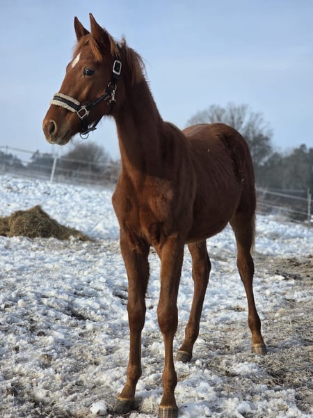 We are offering an exceptional, typy, and movement-rich colt from top dressage lineage for sale. "Esco" impresses not only with his quality but also with his lovable, human-oriented character and charm. Gender: Stallion Award: Silver Premium Lineage: Extreme U.S. x Londontime This foal has everything one desires for modern dressage: expression, elasticity, rhythm, and, of course, plenty of self-carriage. Sire: Extreme U.S. An outstanding sire with an international reputation. Extreme U.S. has already produced numerous top foals and auction highlights. At the KWPN Foal Championship, he sent seven offspring from his first crop—including the champion and several other premium foals. Dam: Londontime Londontime stands for confident, modern dressage prospects with excellent basic gaits, correct conformation, and high rideability. She was champion at the Elmlohe Riding Horse Championships and later a top lot at Verden Auction. "Esco" is a highly promising option for sport and breeding, making him an ideal choice for buyers seeking quality investment.