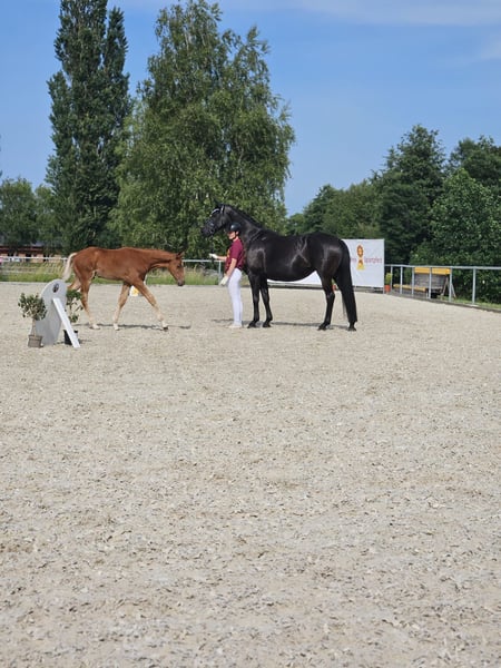 Wir bieten ein außergewöhnliches, typvolles und bewegungsstarkes Hengstfohlen aus bester Dressurabstammung zum Verkauf an. "Esco" überzeugt nicht nur durch seine Qualität, sondern auch durch seinen liebenswerten, menschenbezogenen Charakter und Charme. Geschlecht: Hengst Auszeichnung: Silberprämiert Abstammung: Extreme U.S. x Londontime Diese Fohlen bringt alles mit, was man sich für modernen Dressursport wünscht: Ausdruck, Elastizität, Takt, und natürlich viel Selbsthaltung. Vater: Extreme U.S. Ein absoluter Vererber mit internationalem Format. Extreme U.S. stellte bereits zahlreiche Spitzenfohlen und preisspitzen auf Auktionen. Beim KWPN-Fohlenchampionat entsandte er gleich sieben Nachkommen aus seinem ersten Jahrgang - darunter den Sieger sowie weitere Spitzenfohlen. Mutter: Londontime Londontime steht für souveränen, modernen Dressurnachwuchs mit hervorragender Grundgangartqualität, korrektem Fundament und viel Rittigkeit. Sie war Champion bei Reitpferdechampionat in Elmlohe und später Auktionsspitze in Verden. "Esco" ist eine hochinteressante Option für Sport und Zucht und eignet sich ideal für Käufer, die in Qualität investieren möchten.
