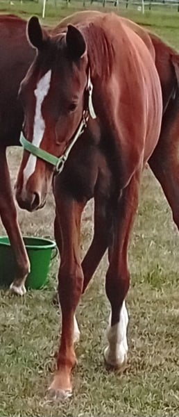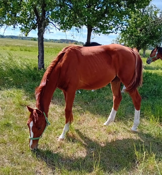 Nous proposons à la vente un poulain prometteur et bien typé en veste alezane chic. Avec une présentation expressive, "Diado" se présente décontracté et léger dans ses mouvements. Il est très sociable, maîtrise l'ABC du poulain et est doté de beaucoup de charme. Il se présente de manière élégante et sportive et offre, grâce à son ascendance, les meilleures conditions de base pour le saut d'obstacles de haut niveau ; peut-être même intéressant pour l'élevage d'étalons. Son père DIATHAGO (par Diamant De Semilly - Carthago - Stakkato - Grannus) est un athlète de saut d'obstacles typé et un fils important du légendaire Diamant de Semilly, qui se distingue par ses excellentes qualités de saut, son élasticité et son bascule. Il a ainsi déjà convaincu lors du test de 70 jours à Neustadt (Dosse) avec une note finale de 8,6 axée sur le saut et s'est montré exceptionnel au saut en liberté (9,0). Son père Diamant de Semilly a été champion du monde en 2002 et vice-champion d'Europe en 2003 sous la selle d'Eric Levallois et compte 71 fils approuvés et 191 descendants couronnés de succès en épreuves de niveau S. Il a également obtenu le titre de champion du monde de saut d'obstacles en 2003. DIATHAGO a remporté des succès sous la selle de Marcus Ehning (5e place au CSI4* de Valkenswaad et vainqueur du classement mondial à Oslo) et a connu auparavant de grands succès sous la selle de Lara Weber dans des épreuves internationales jusqu'à S*** et s'est classé en 2020 au CSI2* de Riesenbeck. En 2019, le couple a remporté le championnat de Westphalie. Jusqu'à présent, l'étalon s'était classé troisième du championnat de Bavière LVM pour chevaux d'obstacle de six et sept ans en 2017 sous la selle de Jens Goldfuß. Il s'est également classé dans la petite finale du championnat du monde des chevaux de saut d'obstacles de cinq ans. Les descendants de DIATHAGO séduisent par leur sportivité et leur chic. Il a notamment été le poulain vainqueur de Warendorf en 2018. Entre-temps, ses premiers descendants ont atteint le niveau difficile et peuvent se targuer de classements S internationaux. DIATHAGO est le demi-frère du fils de PILOT, PILOTHAGO, approuvé en 2012. Plus d'informations sous : https://www.landgestuet.nrw.de/zucht/unsere-hengste/hengst/diathago/ Données sur la souche maternelle : La mère de Diado est issue de la légendaire lignée Landgraf et a elle-même connu le succès sur les parcours jusqu'à 1,35m. En raison de ses performances sportives, elle a été récompensée par la prime DSP. Diado est né le 22.04.2024 et est sur le point d'être sevré. Si vous êtes intéressé ou si vous souhaitez de plus amples informations, n'hésitez pas à nous contacter.