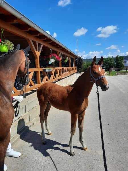 This colt from the first crop of Stakkato Cornet is for sale. Born on 04.04.2024. His dam St.Pr.St Leona Lewis by Ludwig von Bayern bears the title DSP premium mare breeding. All her foals are premium foals. Her two daughters are also state premium mares. Le Casira B is successful in elementary class show jumping competitions and has won the 3-year-old field performance test. Lia Casira B was reserve champion mare at the Saxon-Thuringian Mare Championships in Wolfersdorf. With a score of 9.5 in free jumping. She already had an auction foal at the DSP Elite Auction in Darmstadt-Kranichstein. All horses from the mare family are well-behaved and easy to handle. There are also no problems when breaking in. Please call if you have any further questions about the foal.
