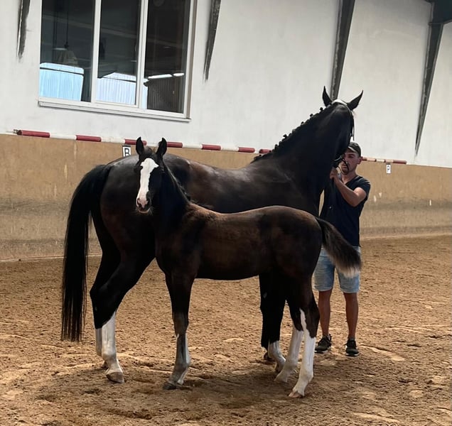 Este potro de 2024, muy bien presentado, no sólo impresiona por su pedigrí, sino también por su carácter bondadoso. Ambas líneas paternas pueden presumir de grandes éxitos en salto, lo que le confiere un potencial prometedor. Desde el primer momento se muestra muy sociable, lo que le convertirá en un compañero muy especial en el futuro. Impresiona por sus excelentes aires básicos y su conformación impecable, lo que acentúa su calidad. Con su potencial y su pedigrí, también sería muy interesante como semental. El potro fue destetado a finales de 2024 y ahora se mantiene en un entorno apropiado para su edad junto con otros potrillos en un establo suelto, donde tiene la oportunidad de desarrollarse de forma óptima. Es posible una cría posterior in situ previo acuerdo. Este potro ofrece una excelente base para un mayor desarrollo y es una opción prometedora tanto para criadores ambiciosos como para jinetes que busquen un caballo joven con talento. En venta por debajo del valor debido a la reducción de tamaño. - Una oportunidad única de adquirir un joven y prometedor caballo de salto.
