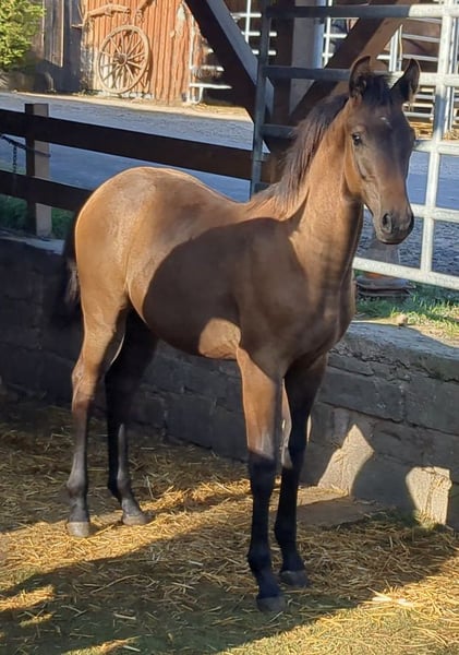 Sehr umgängliches Hengstfohlen mit 3 sehr guten GGA und korrektem Fundament. Er ist sicherlich ein vielversprechendes Nachwuchspferd für den Springsport.
