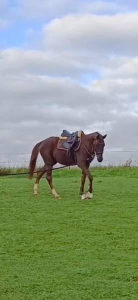 Dressurnachwuchs mit Spitzen-Abstammung – Baron x Dancier | Elitefohlen 2021 Rasse: Deutsches Sportpferd (DSP) Geboren: 08.04.2021 Geschlecht: Hengst Farbe: Fuchs Größe: ca. 1,55 m (noch im Wachstum) 🩶 Abstammung Dieser vielversprechende junge DSP-Hengst stammt aus einer der bewährtesten Dressurlinien Deutschlands: Vater: Baron (v. Benicio – Belissimo M – Sir Donnerhall) – bekannt für Rittigkeit, Typ und Bewegungsstärke. Mutter: Dornröschen (v. Dancier – De Niro – Maurice) – aus dem erfolgreichen hannoverschen Stamm der Golfdiele, der zahlreiche Grand-Prix-Pferde hervorgebracht hat. Elitefohlen DSP 2021. Diese Blutkombination vereint sportliche Leistungsfähigkeit mit höchster Rittigkeitsvererbung. 💫 Bewegung & Charakter Drei sehr gute Grundgangarten mit viel Ausdruck, Takt und natürlicher Balance Besonders hervorzuheben: raumgreifender, schwungvoller Trab mit aktivem Hinterbein Longiert, kennt Reitergewicht (nicht angeritten), regelmäßig gearbeitet. Sozialer, ausgeglichener Charakter – steht neben Stute und Wallach problemlos in der Box, ebenso verträglich auf der Koppel. 📈 Perspektive Ideal für ambitionierte Reiter, Ausbilder oder Züchter mit Fokus auf Dressur. Durch sein korrektes Fundament, den elastischen Bewegungsablauf und sein angenehmes Temperament ein Partner mit Zukunft. Wird unter Wert verkauft, da er koppt – ohne gesundheitliche Beeinträchtigung.